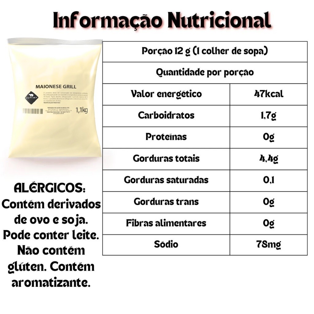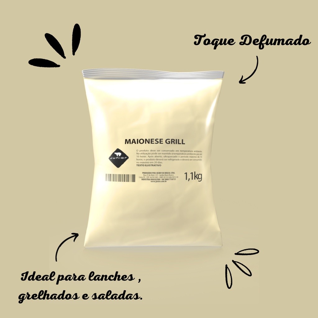 Maionese Grill Junior Molho Cremoso Gourmet Pouch 1.1Kg Molho Lanches Fritas Lanchonete Restaurante Hamburgueria
