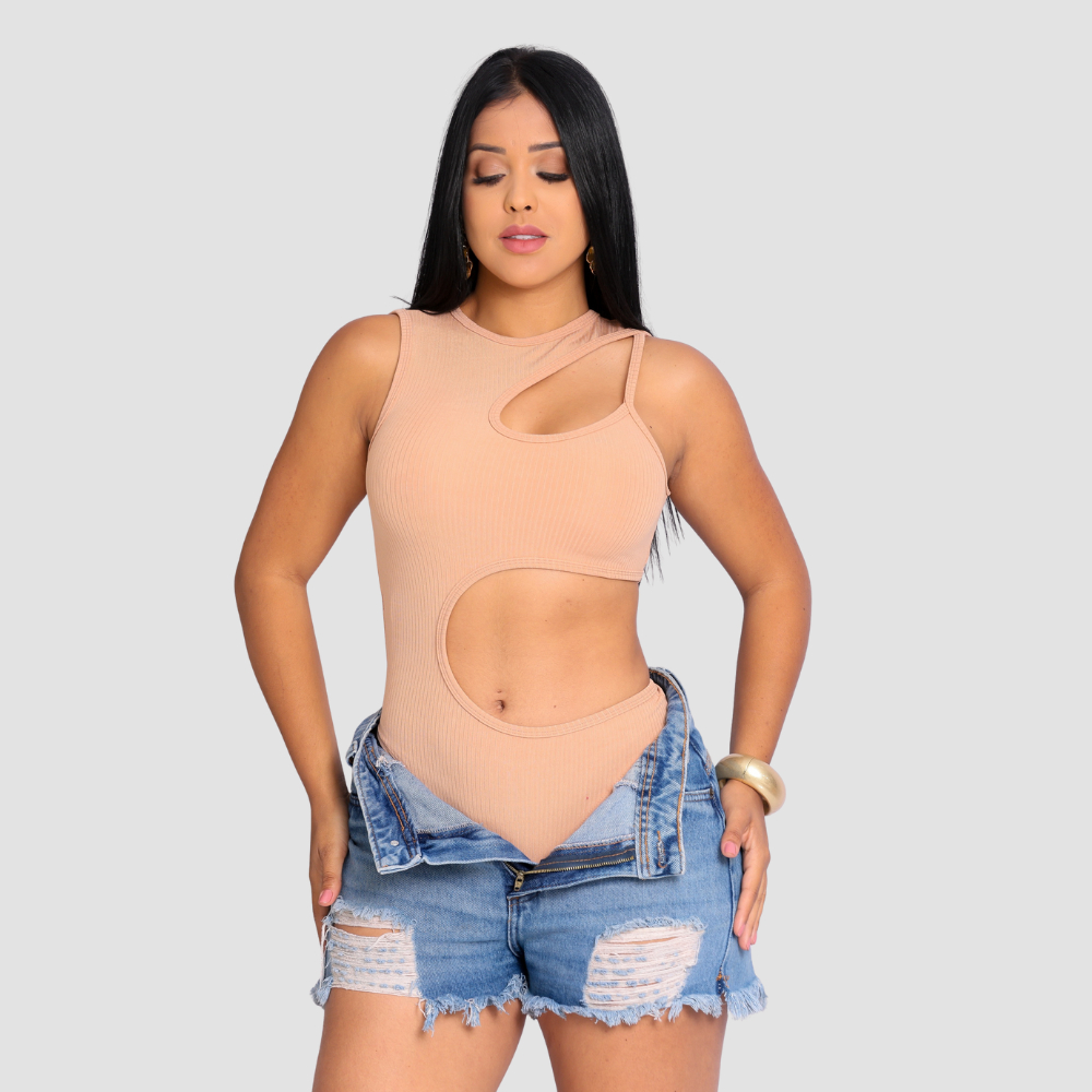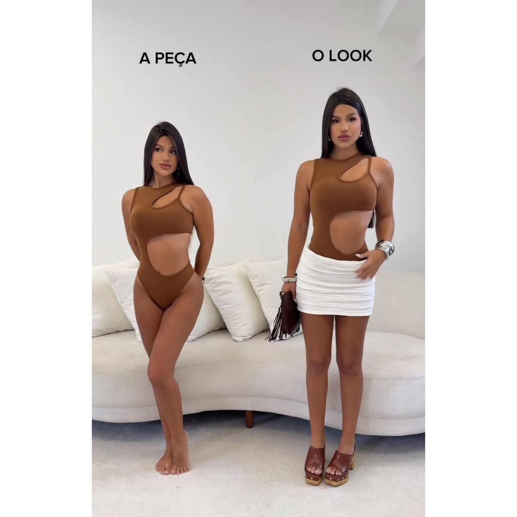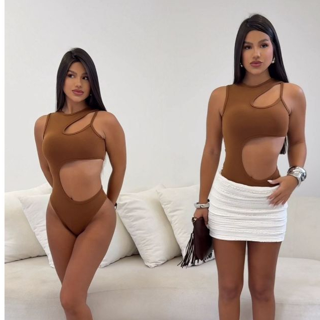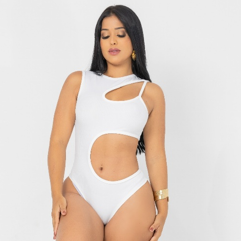 Body Feminino Malu Moda Gringa Malha Canelada Sem Bojo Tendência Verão com recorte