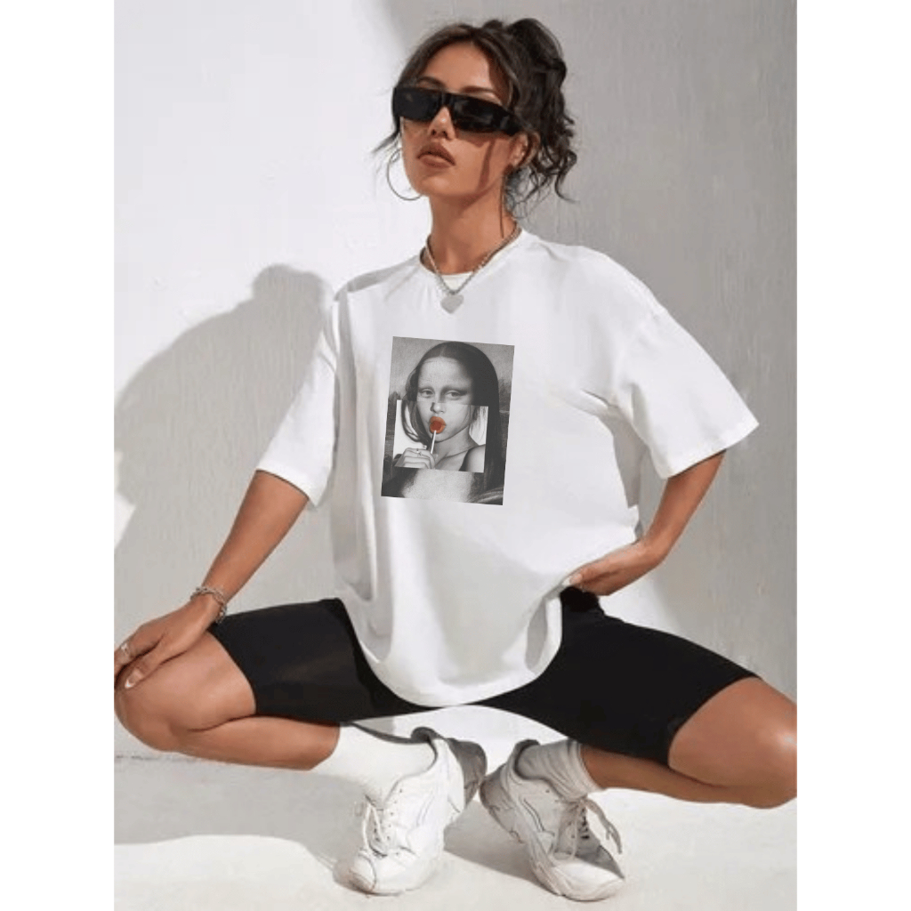 Camisa Camiseta Oversized Feminina Estampa Monalisa 100% Algodão