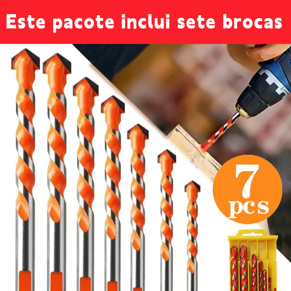 Jogo de 7 Brocas de Metal Duro para Aço Madeira e Concreto