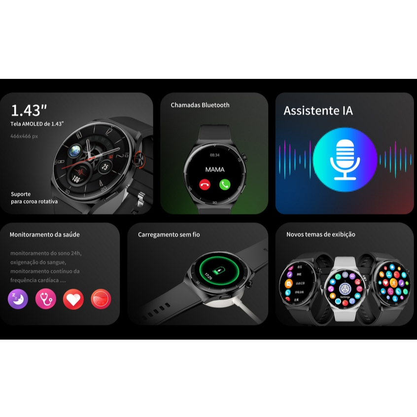 Relógio masculino à prova d'água IP68 original com tela AMOLED