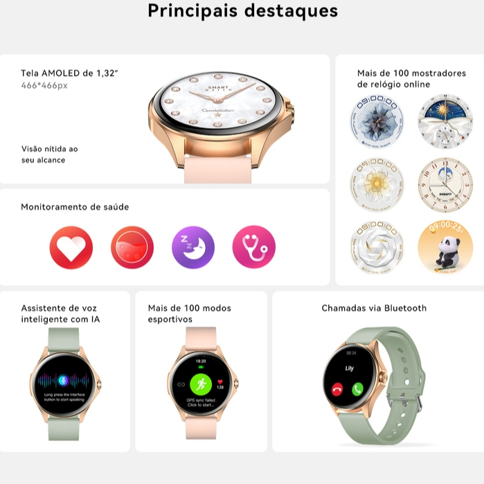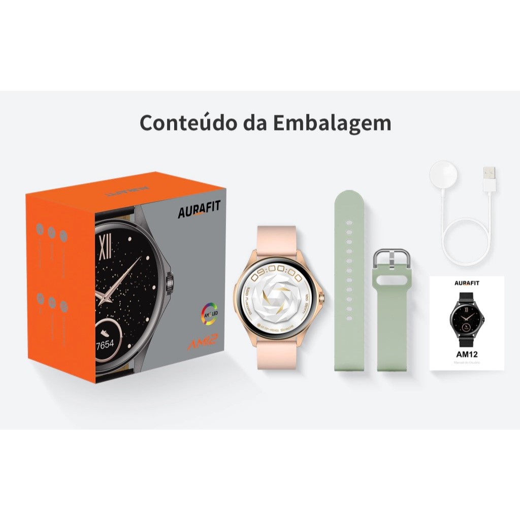Relógio Feminino Inteligente Smartwatch Aurafit modelo AM12 Original com GPS ChatGPT