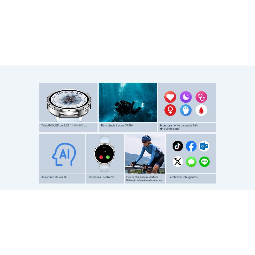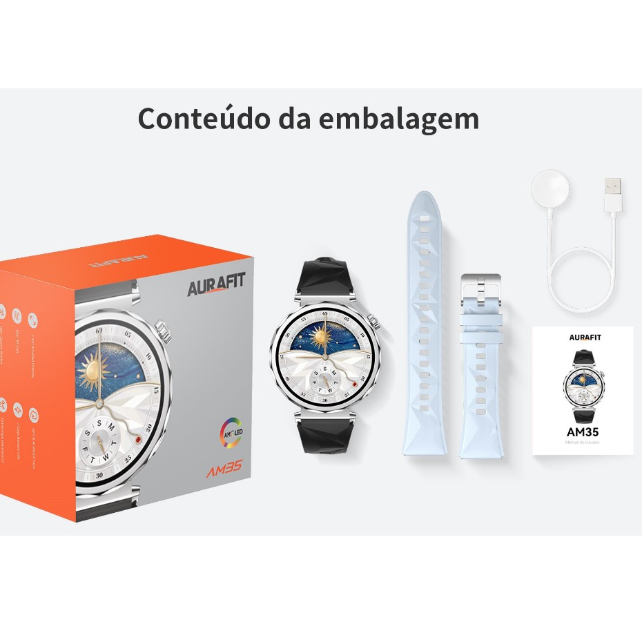 Relógio feminino à prova d'água 3ATM original com tela AMOLED