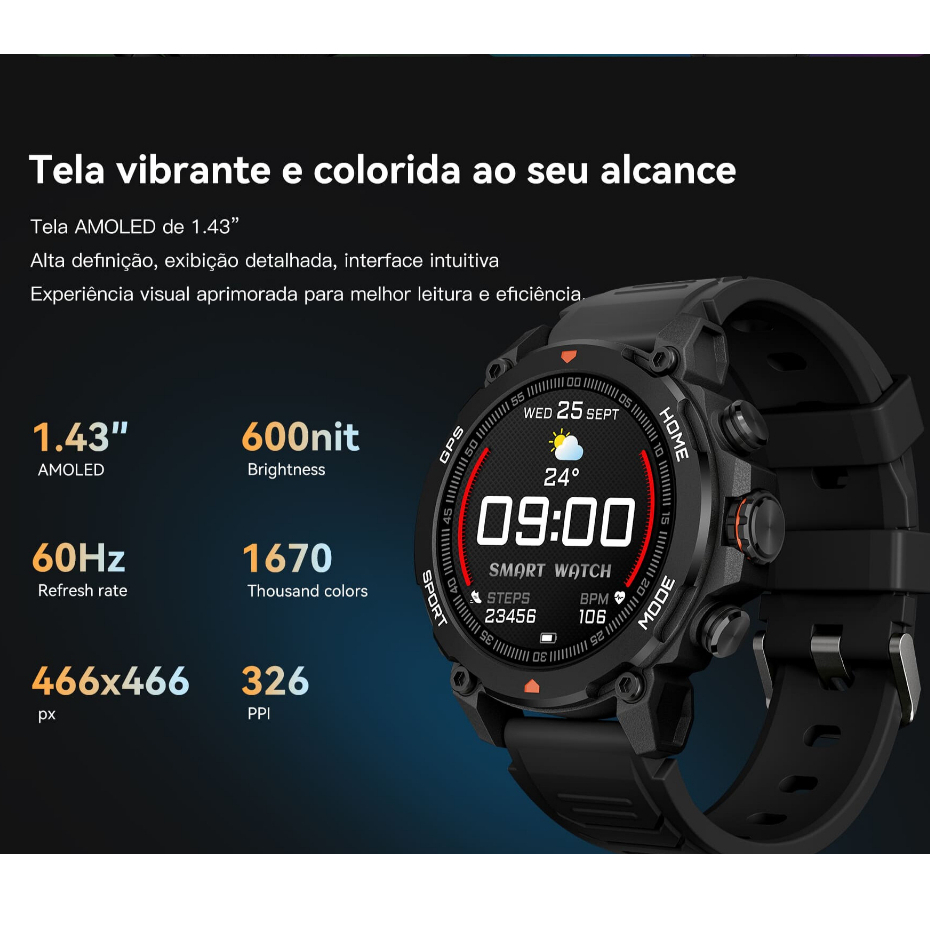 Relógio Smartwatch Trek1 G6 com GPS integrado A Prova D'água 3ATM bateria de longa duração