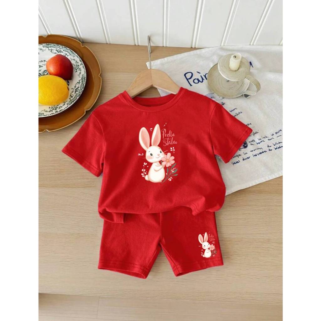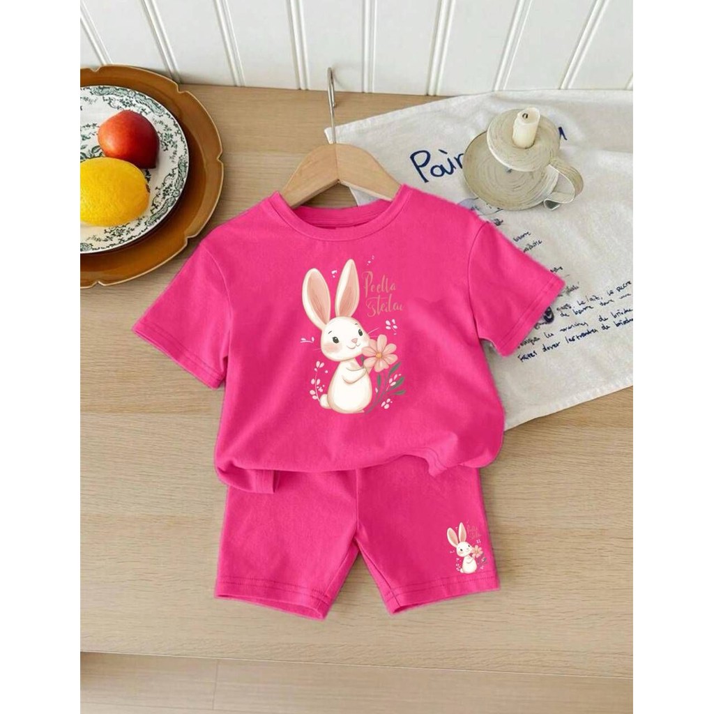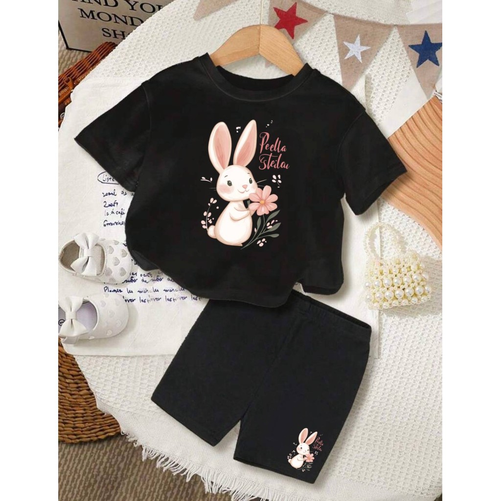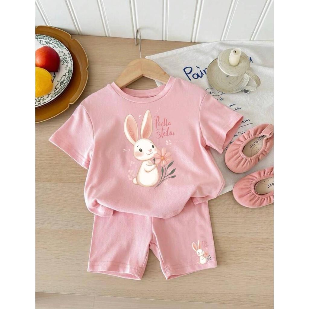 Conjunto de short e camiseta infantil menina bebê estampa premium coelhinha