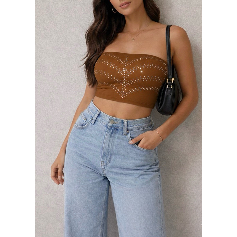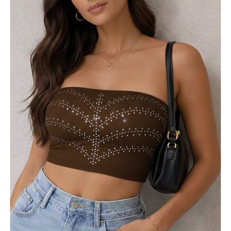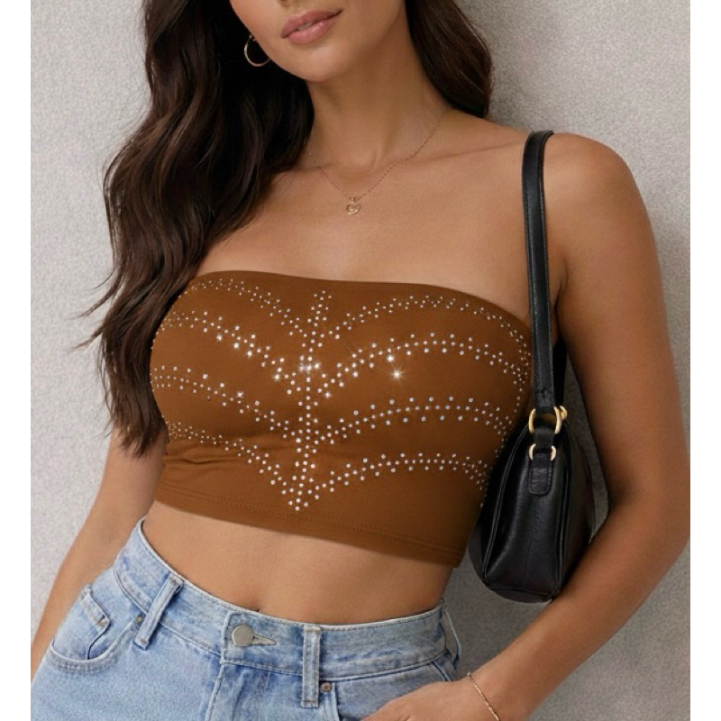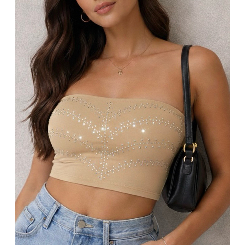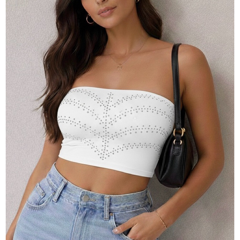 Croped Top Faixa Carol em Pedraria Strass com Bojo