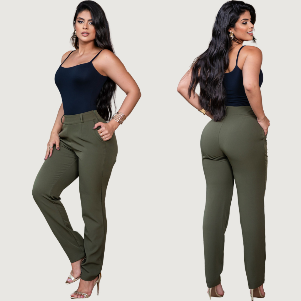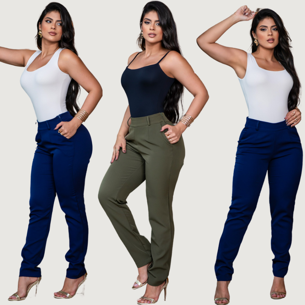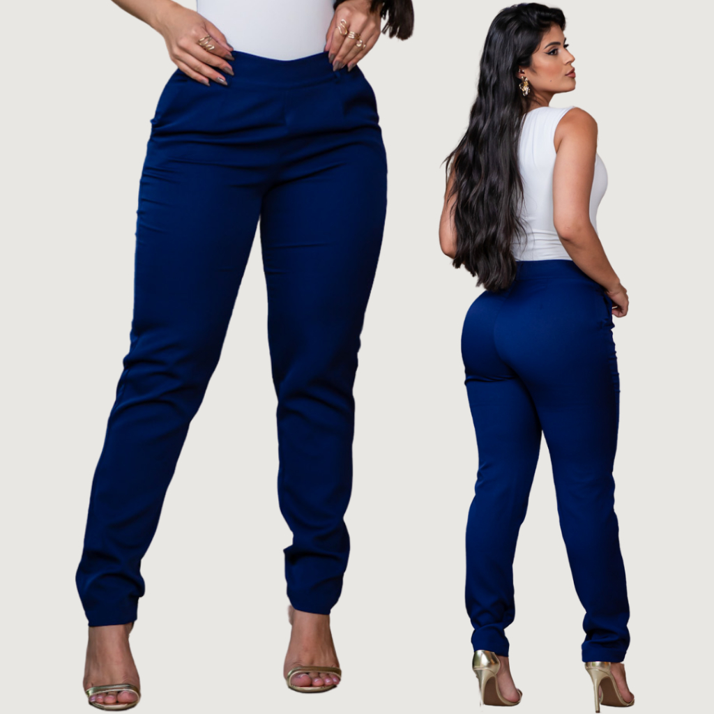 Calça Alfaiataria Feminina Social Elegante Cintura Alta Casual Tendência Com Bolso