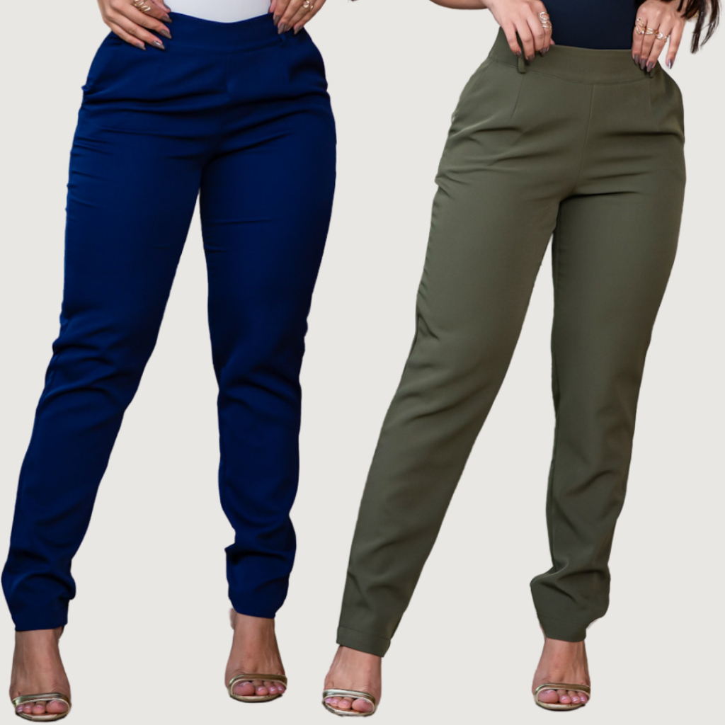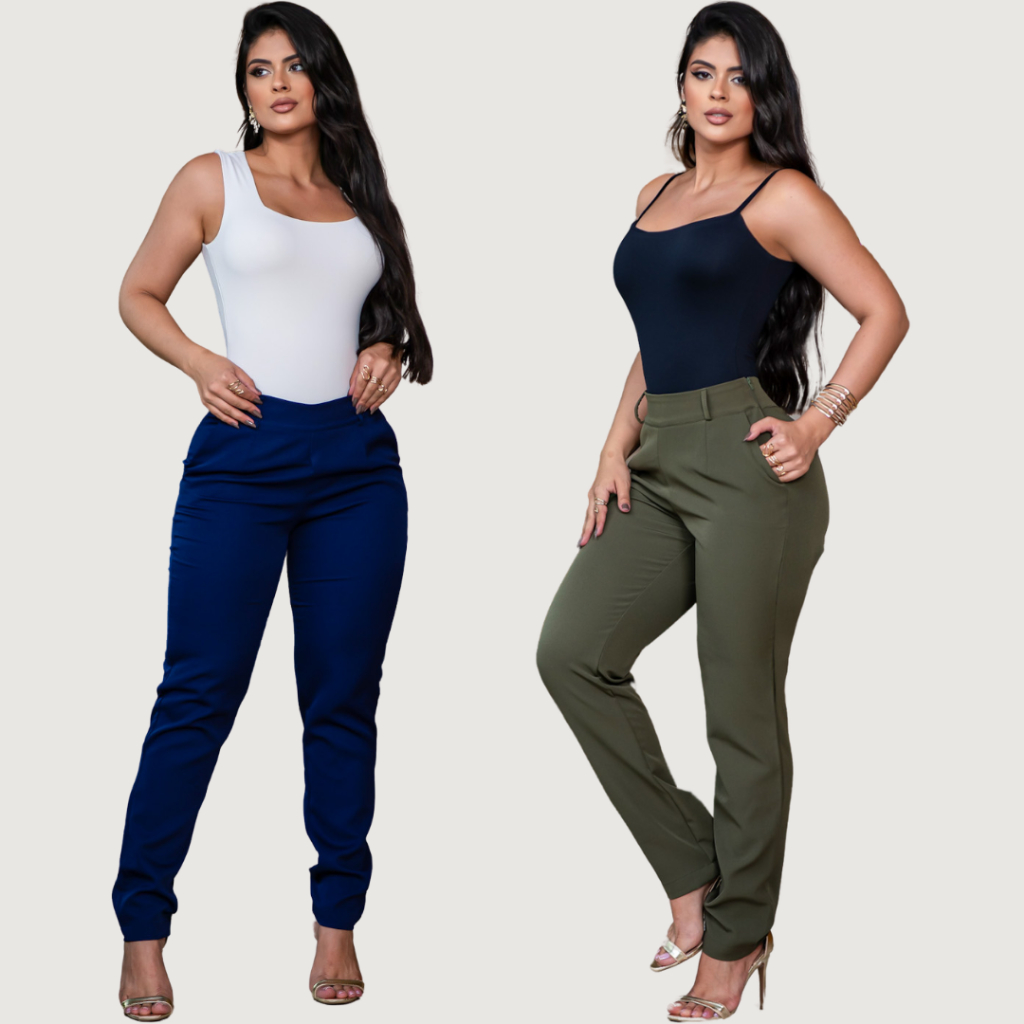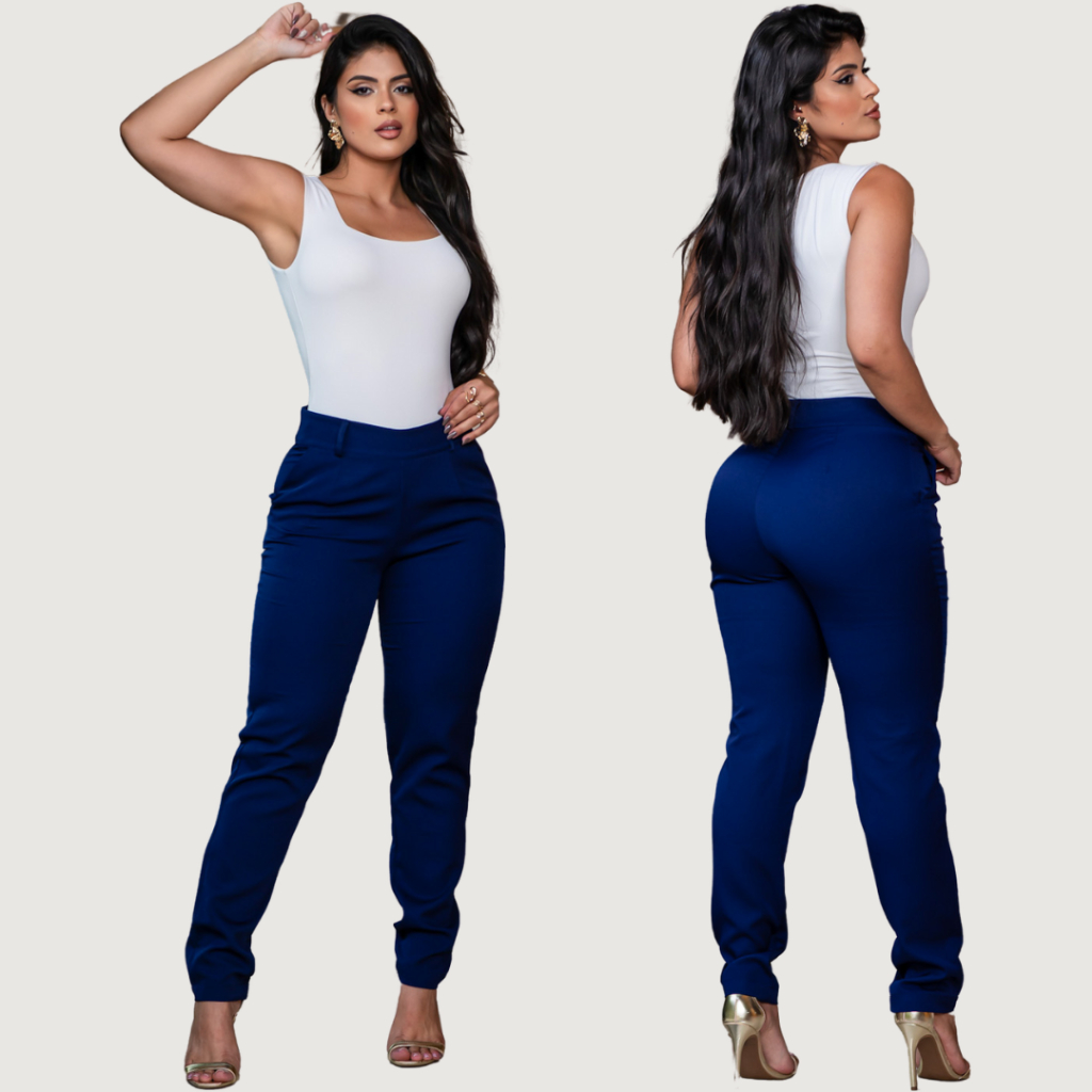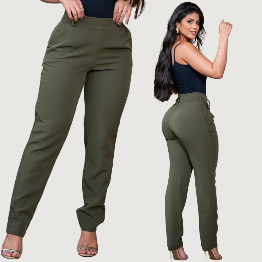 Calça Alfaiataria Feminina Social Elegante Cintura Alta Casual Tendência Com Bolso