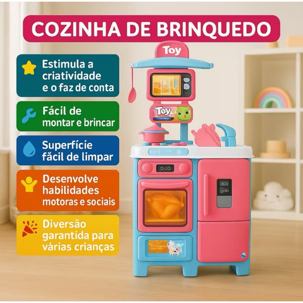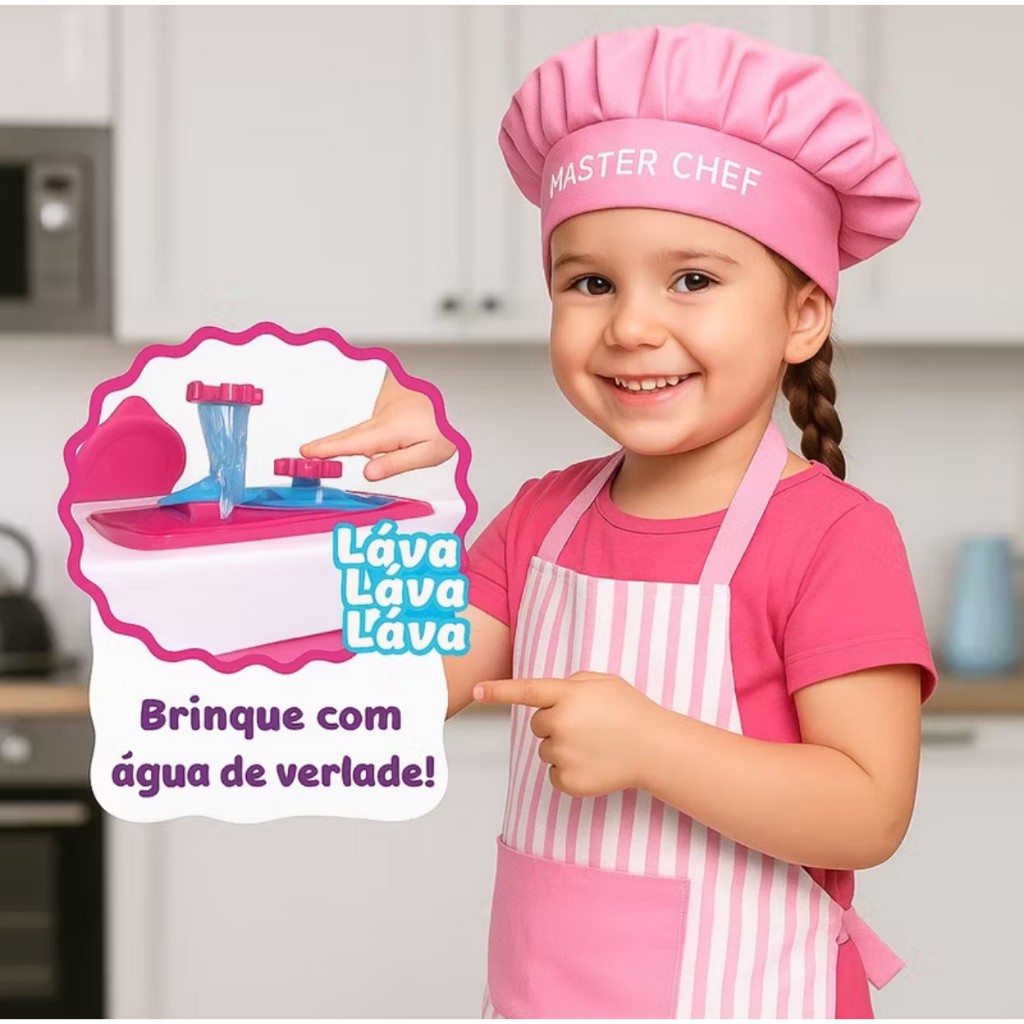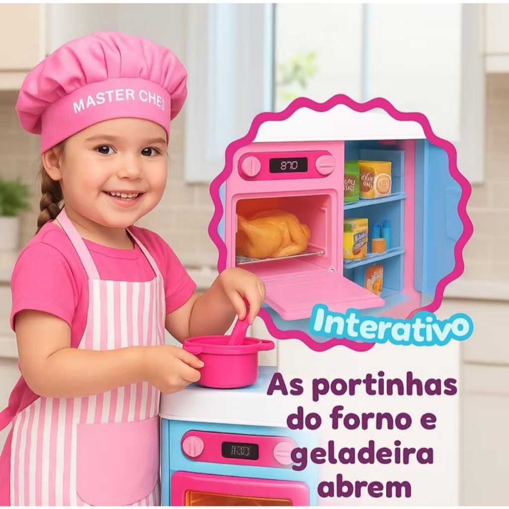 Cozinha Infantil Grande Completa Com Geladeira Brinquedo Menina Sai Água de Verdade 92 Cm