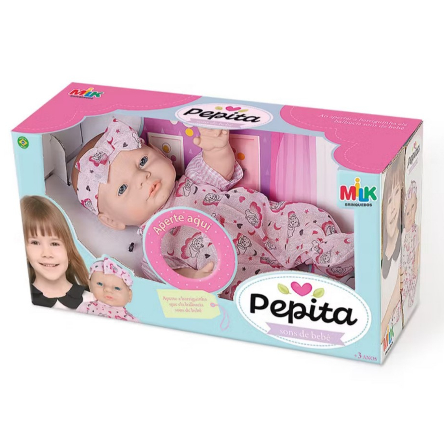 Boneca Pepita Com Sons De Bebê Milk Fofa Que Fala