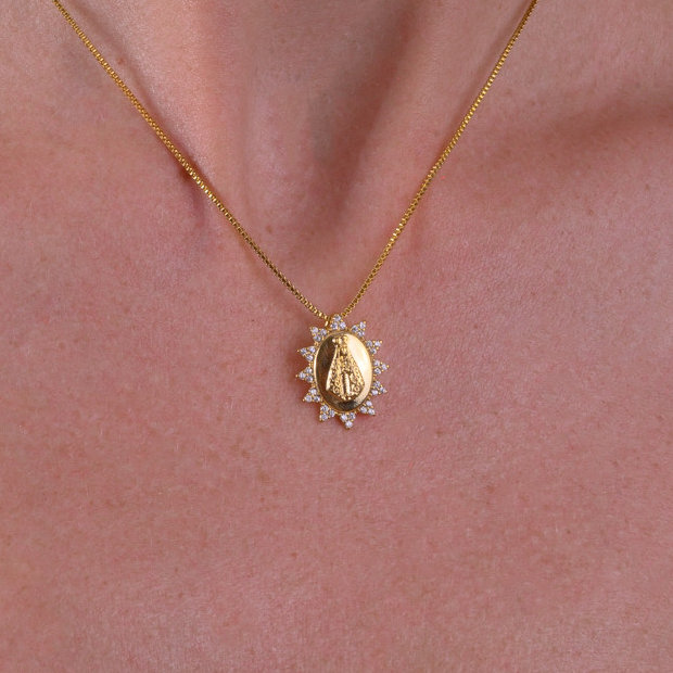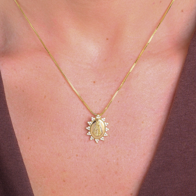 Colar Nossa Senhora Cravejada com Banho em Ouro 18k