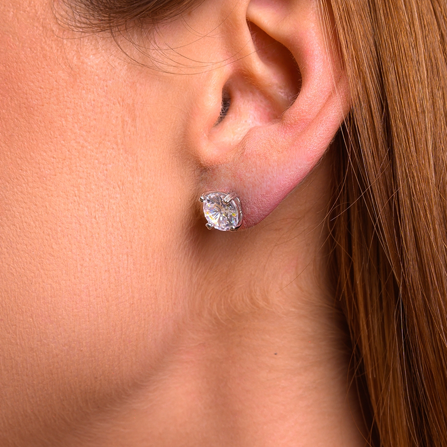 Brinco Ponto de Luz Zircônia com Banho em Ródio Branco