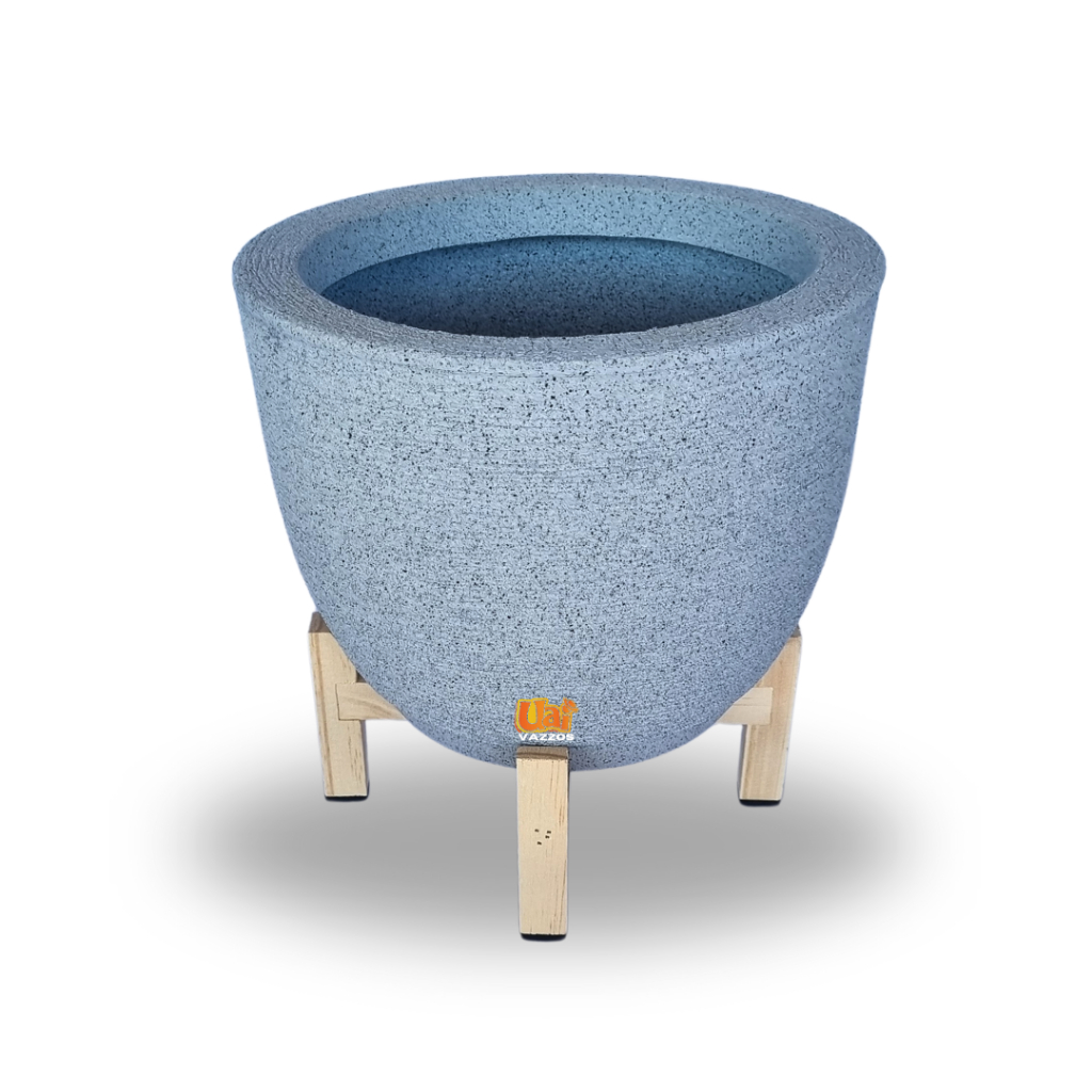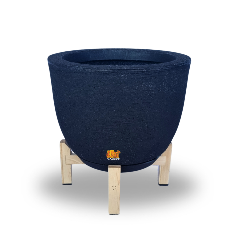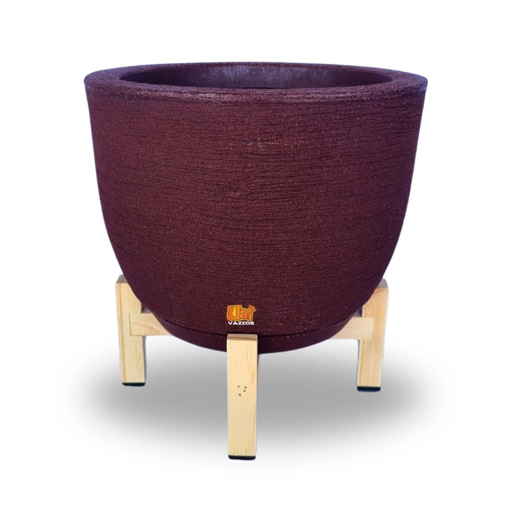 Kit 1 Vaso Bojo Escovado P Polietileno P/plantas ou Flores + 1 Suporte Madeira Pinus