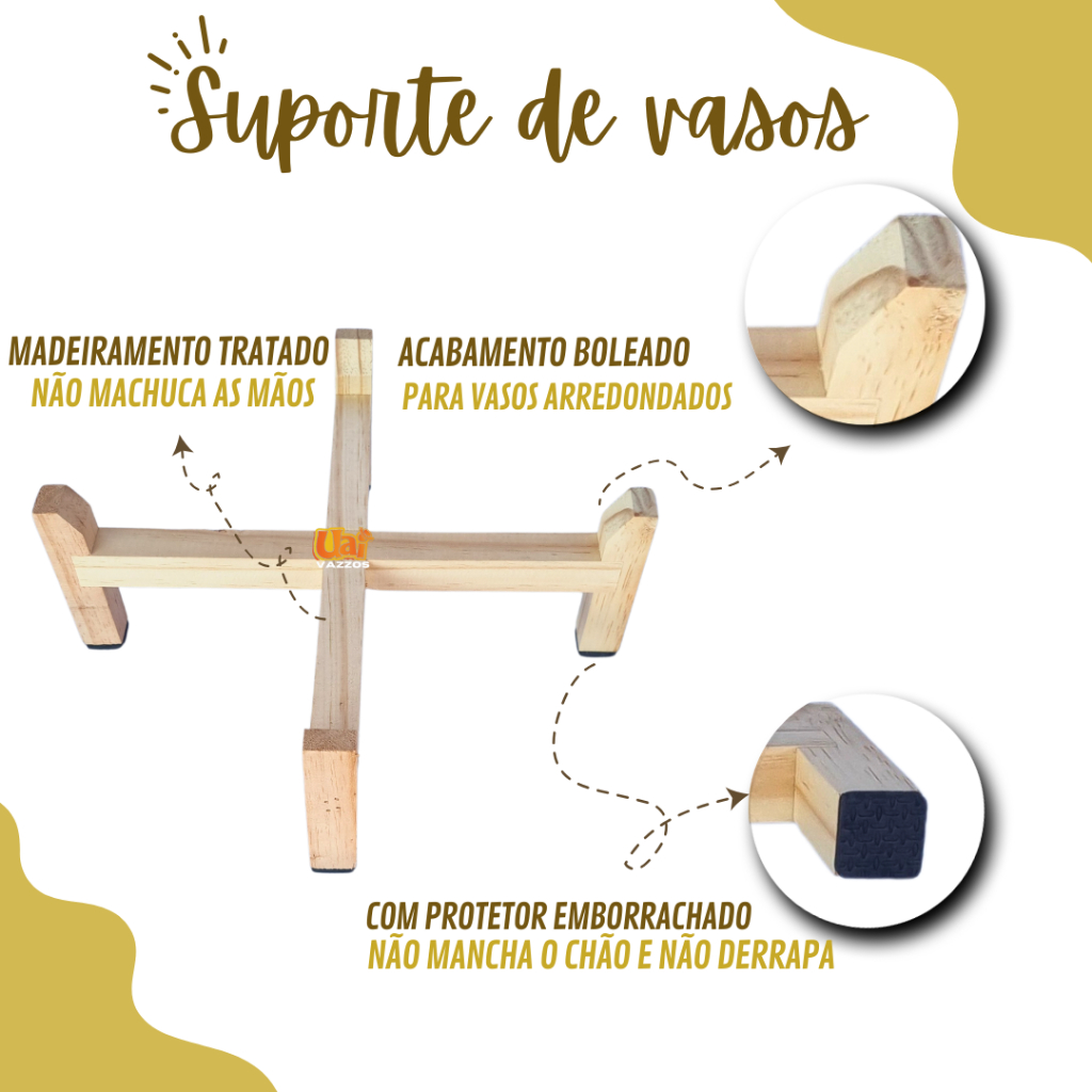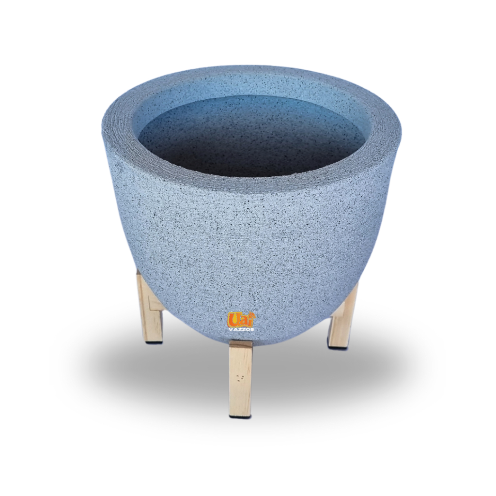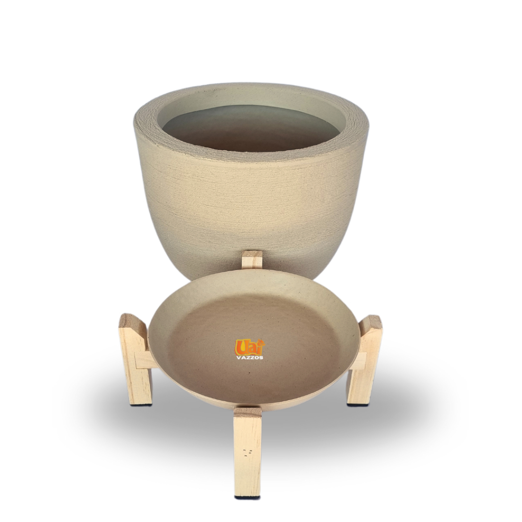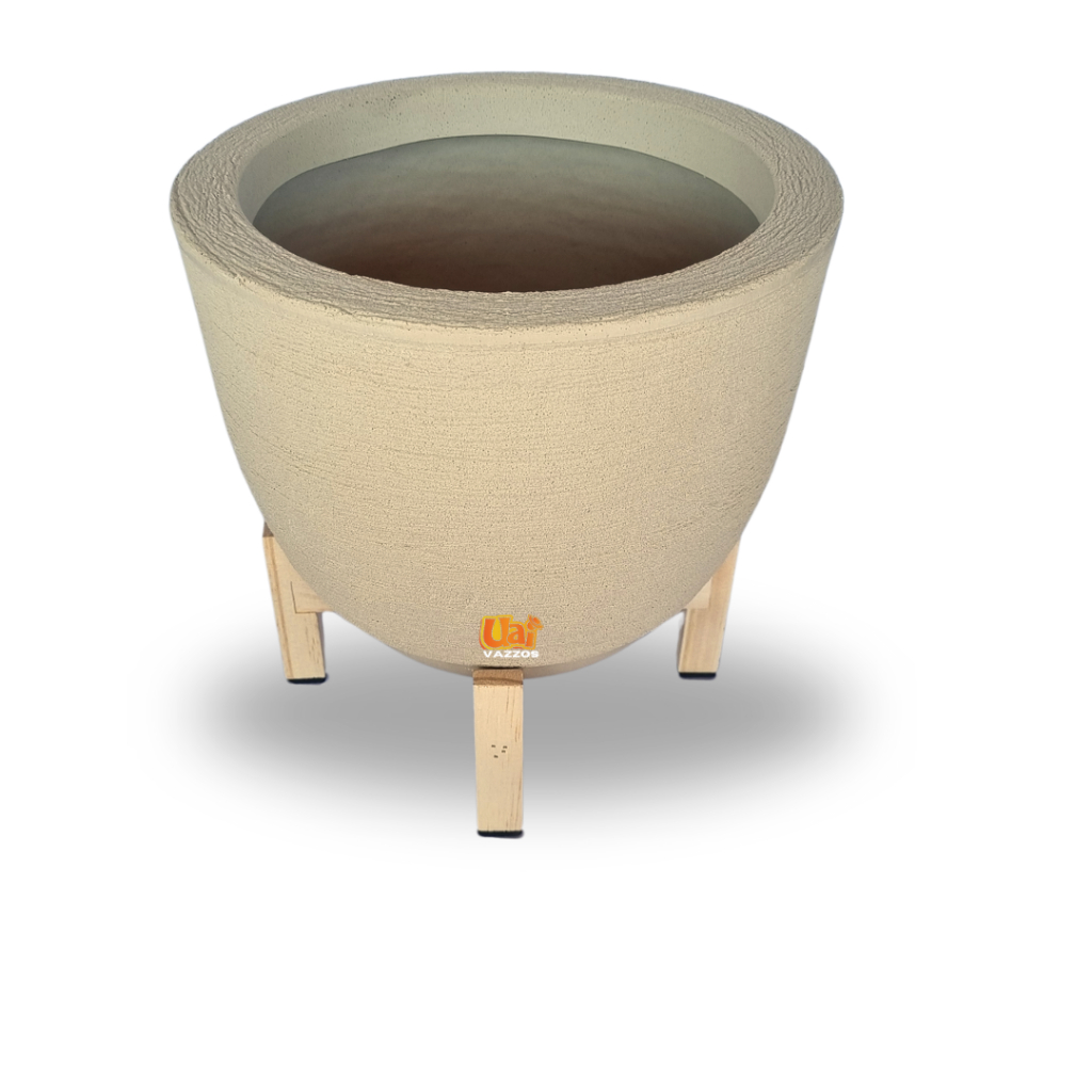 Kit 1 Vaso Bojo Escovado P Polietileno P/plantas ou Flores + 1 Suporte Madeira Pinus