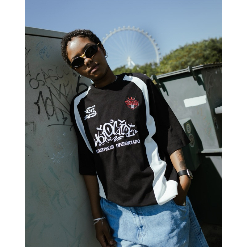 camiseta polo oversizes streetwear trip side estampa alto relevo street camiseta premium