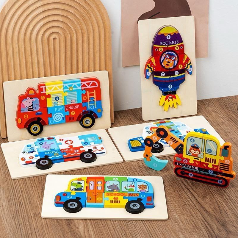 Quebra-cabeça 3D de Madeira - Dinossauros, Carros, Foguetes - Brinquedo Educativo para Crianças milly shop