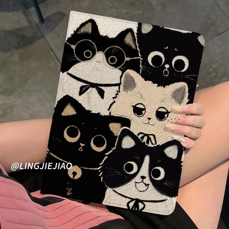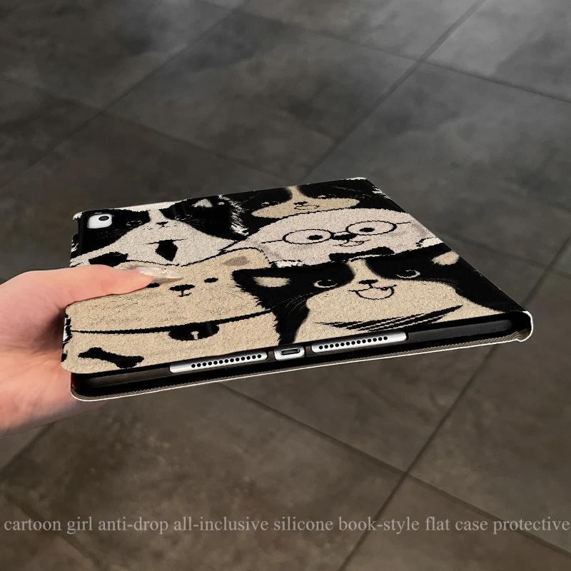 Capa Capinha Silicone Flip gato para Tablet Samsung Galaxy Tab S6 Lite A9 PLUS S9 S10 FE PLUS + Case Slot para Caneta
