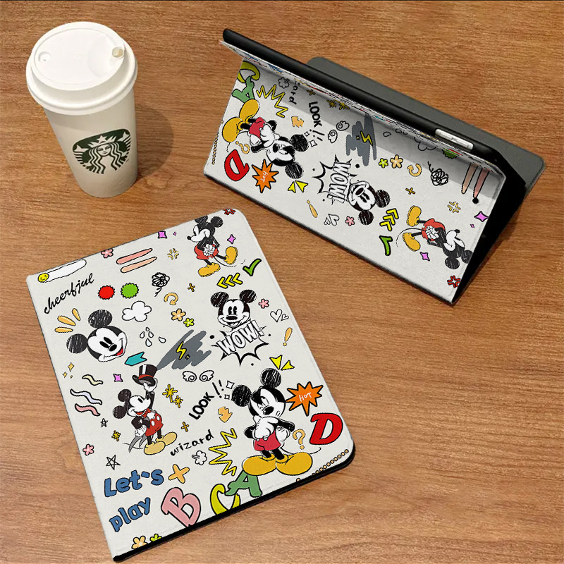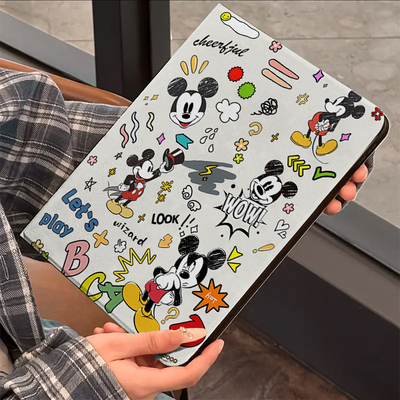 Capa Capinha Silicone Flip Mickey para Tablet Samsung Galaxy Tab S6 Lite A9 PLUS S9 S10 FE PLUS + Case Slot para Caneta