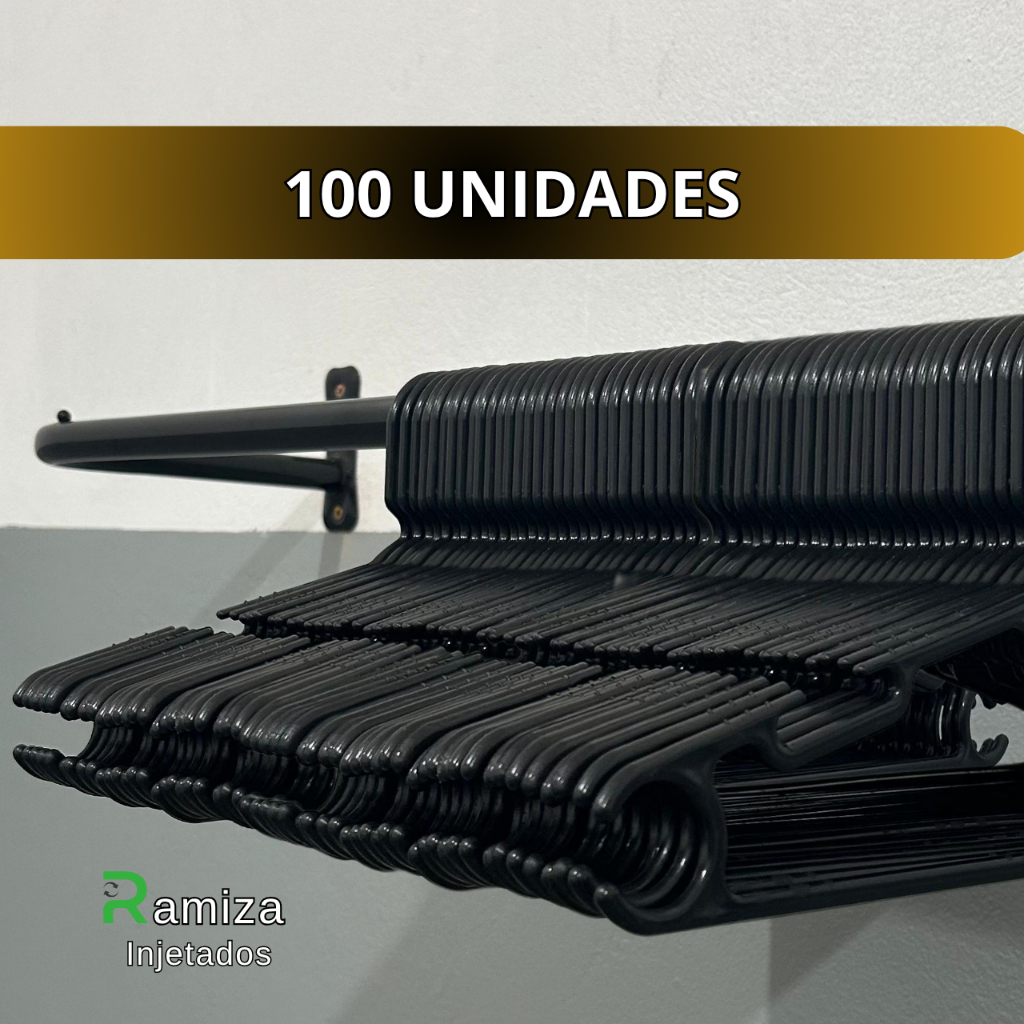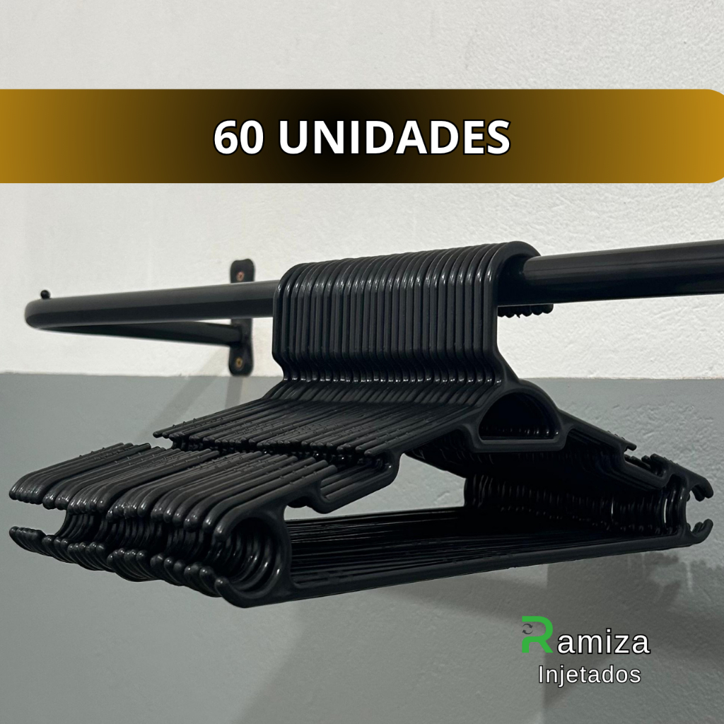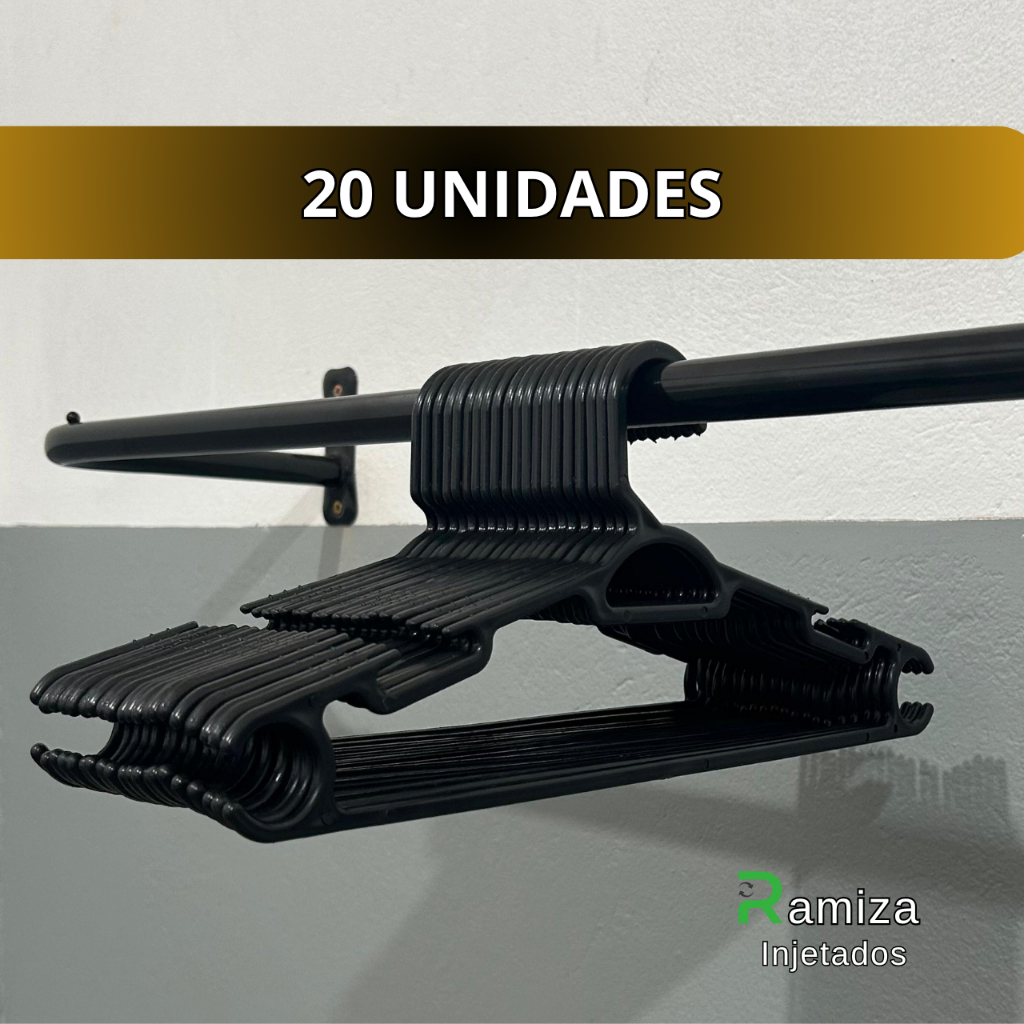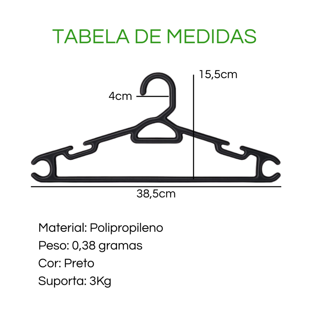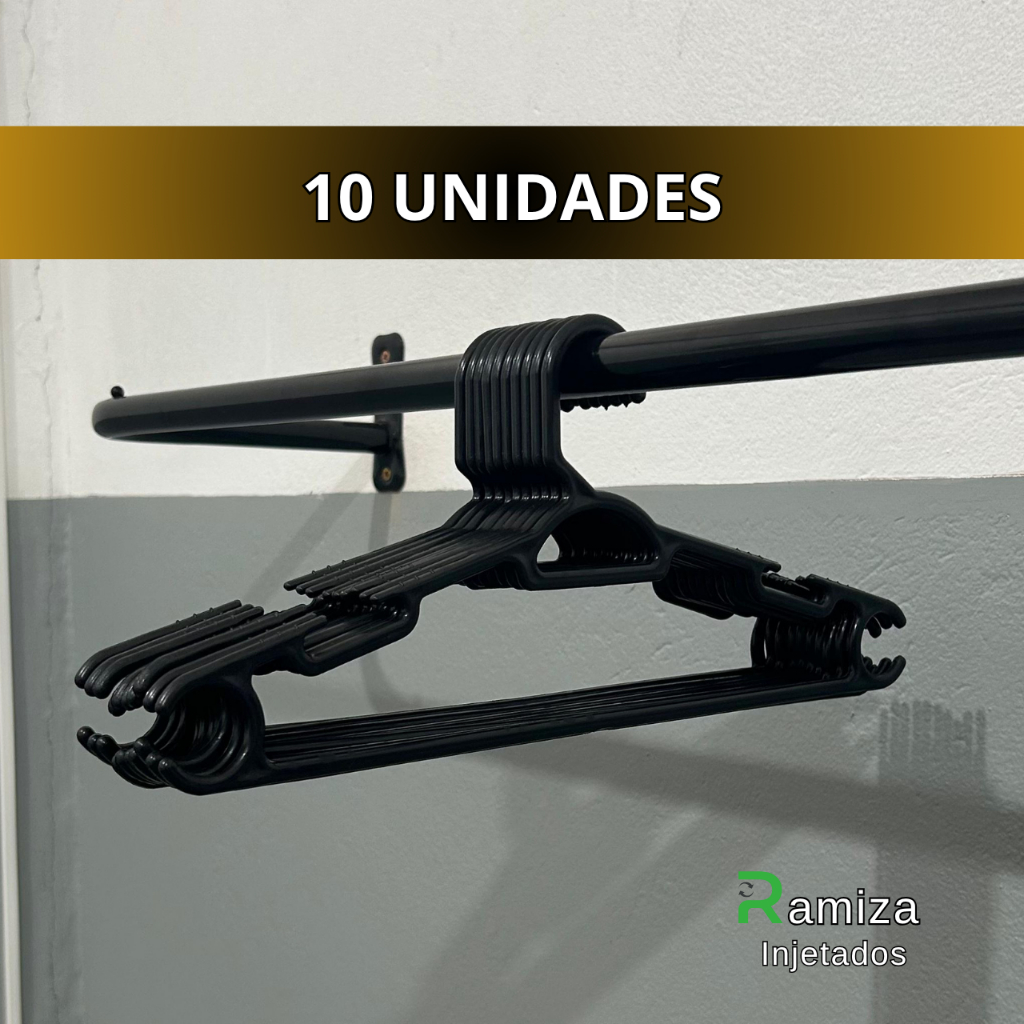 Cabide Adulto Preto Reforçado 38cm - Kit 10 a 100 Unidades - Suporta até 3Kg