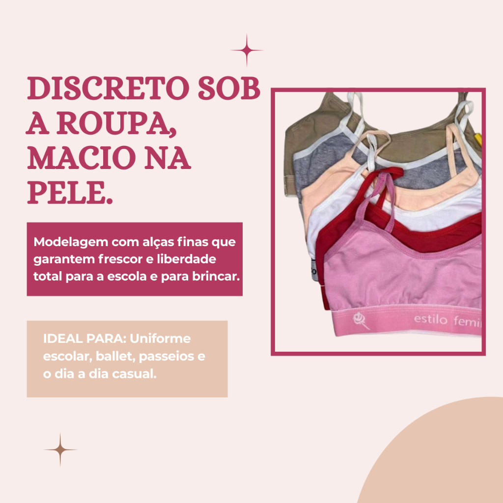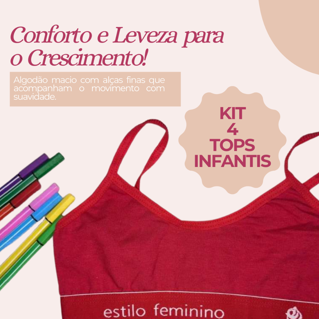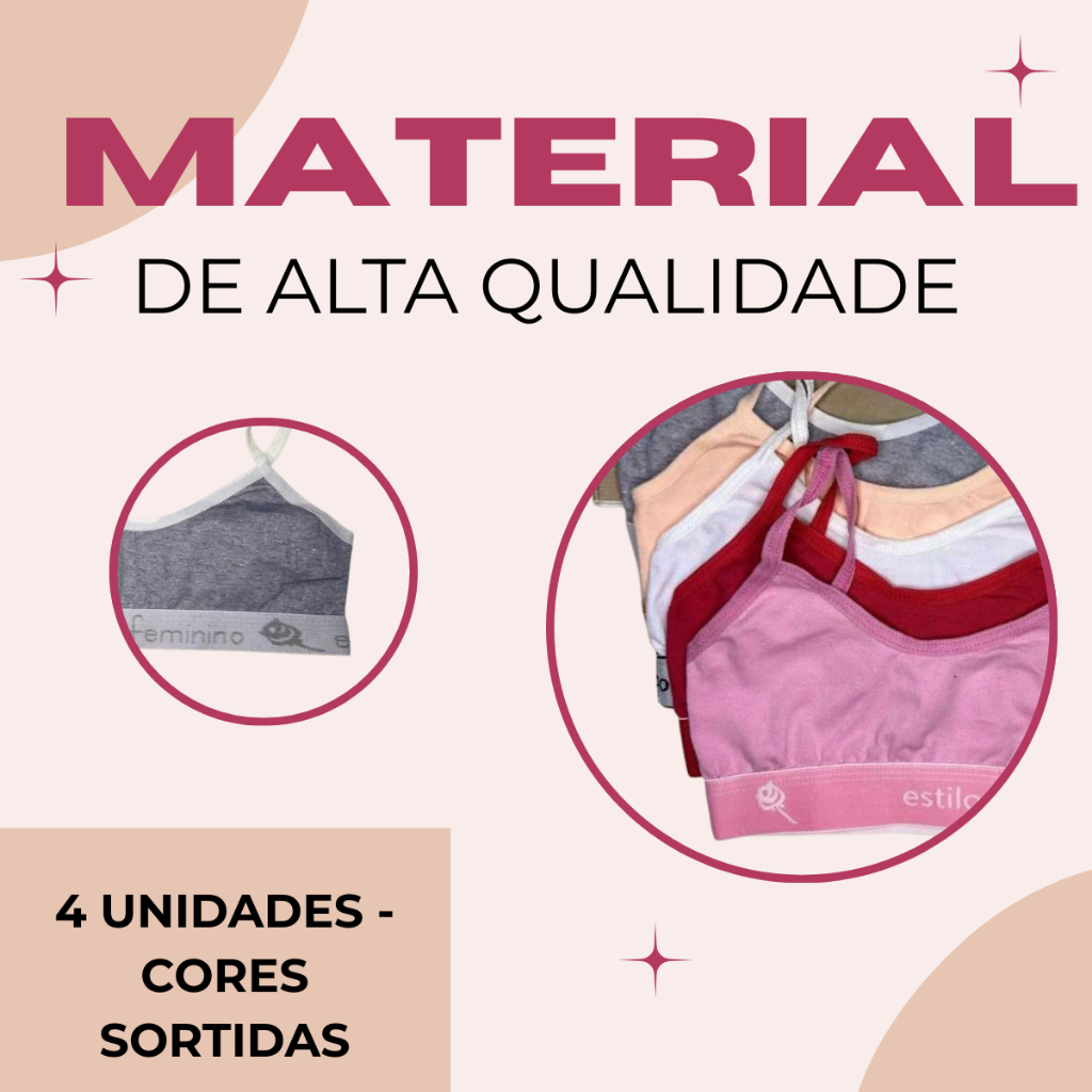 Kit 4 Tops Algodao Infantil Top Cotton Meninas Sutiã Infantil