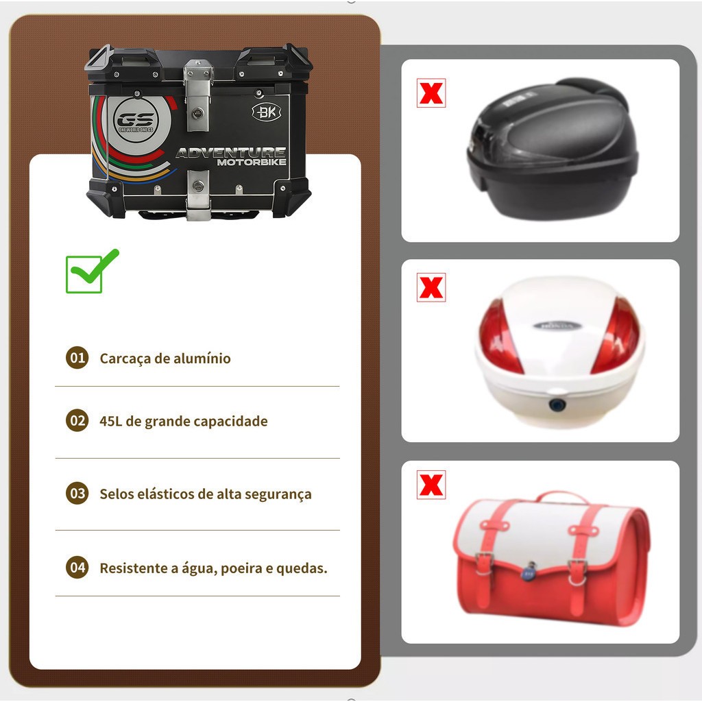 Bau Alumínio Traseiro 45/65 Litros Top Case Caixas E Baús Para Motocicletas