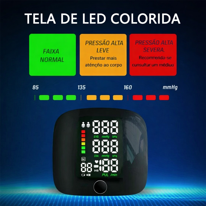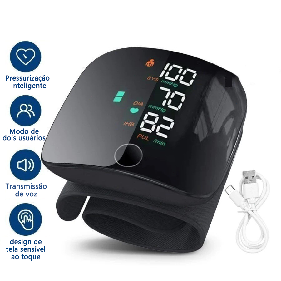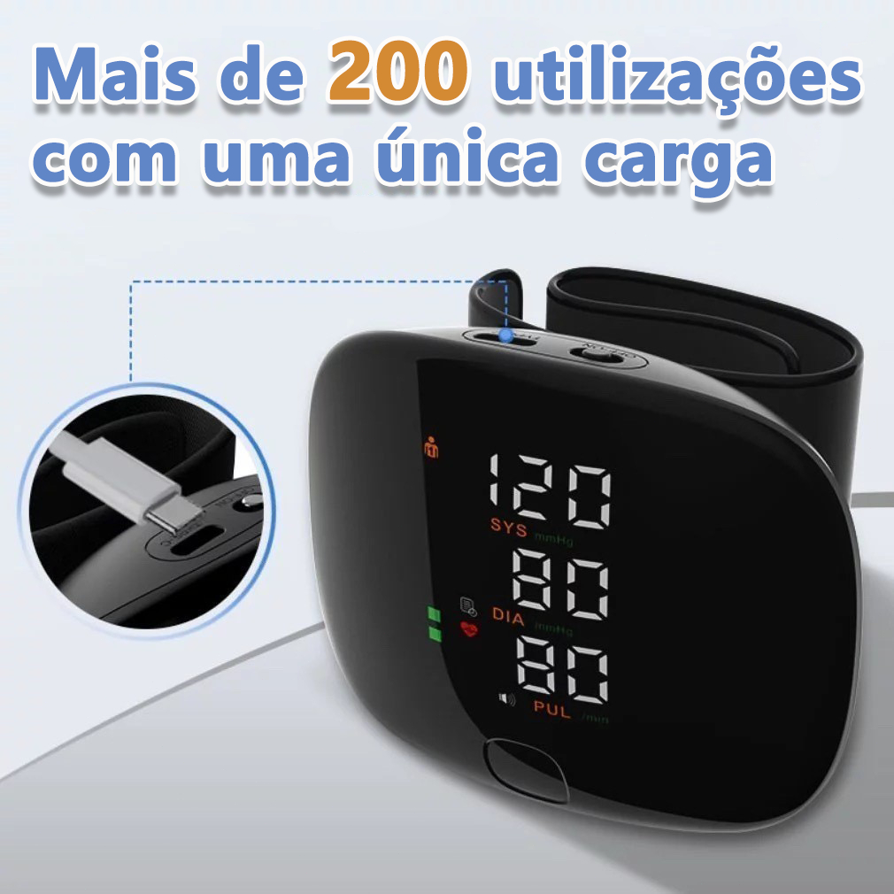 Aparelho de Pressão Digital de Pulso Recarregável Monitor Arterial Automático Portátil Esfigmomanômetro