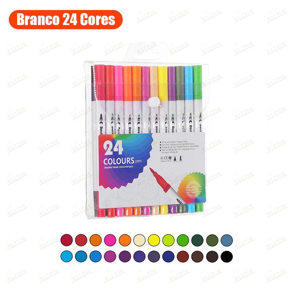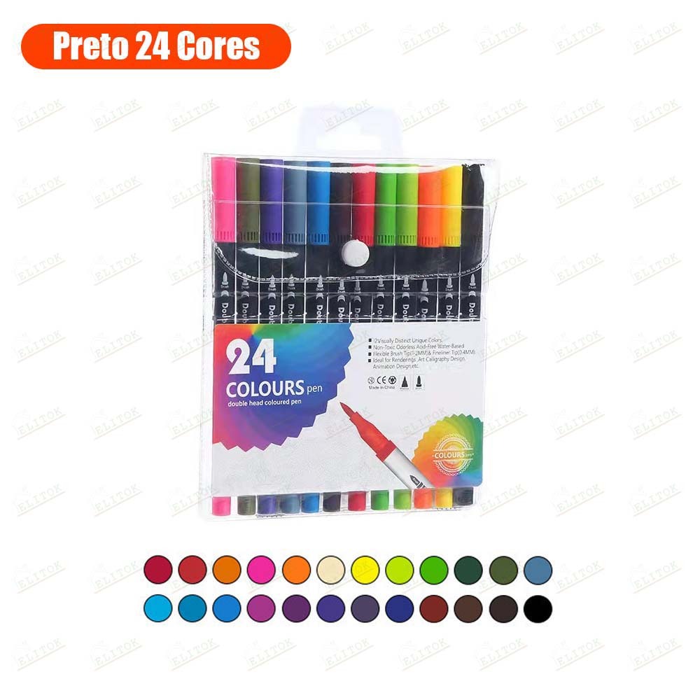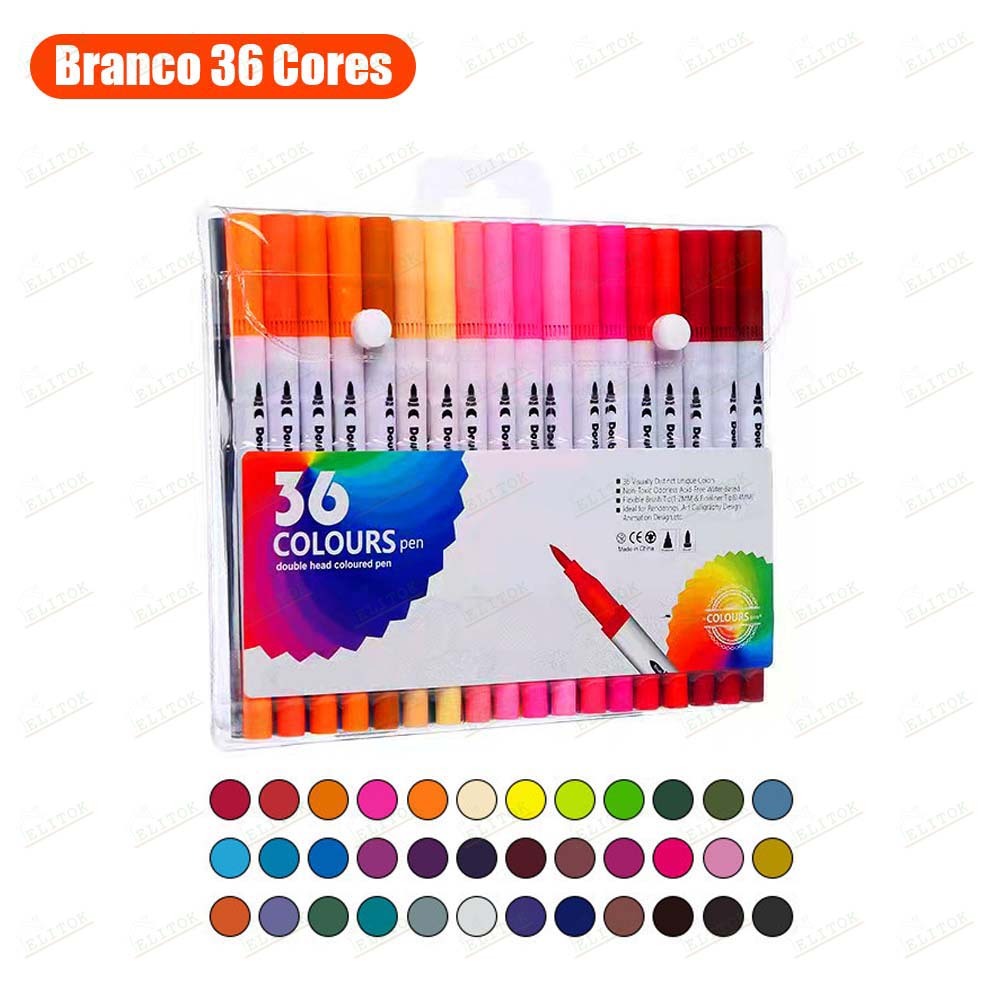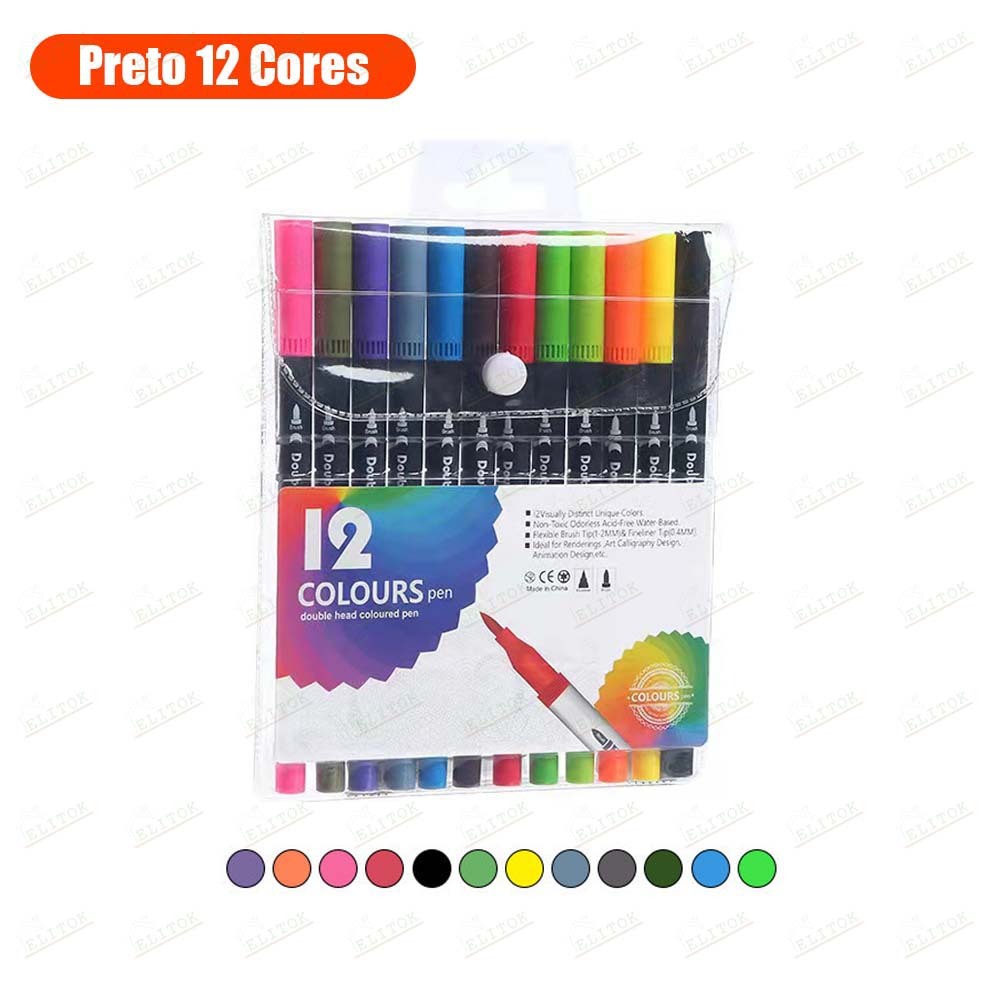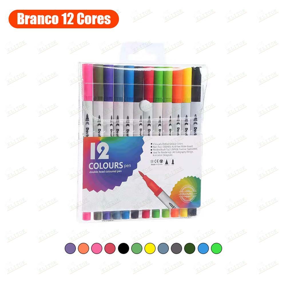Kit Caneta 2 em 1 Brush Lettering e Ponta Fina Dual Pen Canetinha Colorir Desenho 12/24/36/48/60