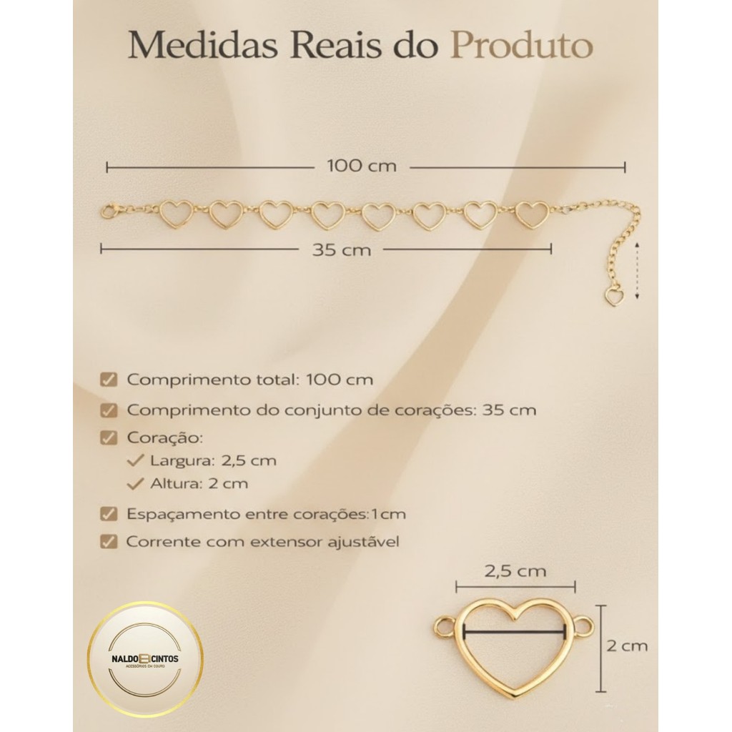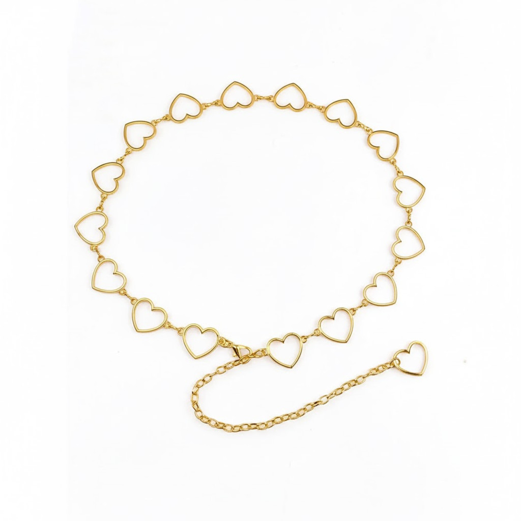 Cinto De Corrente De Coração - Prata e Dourado Envio Imediato