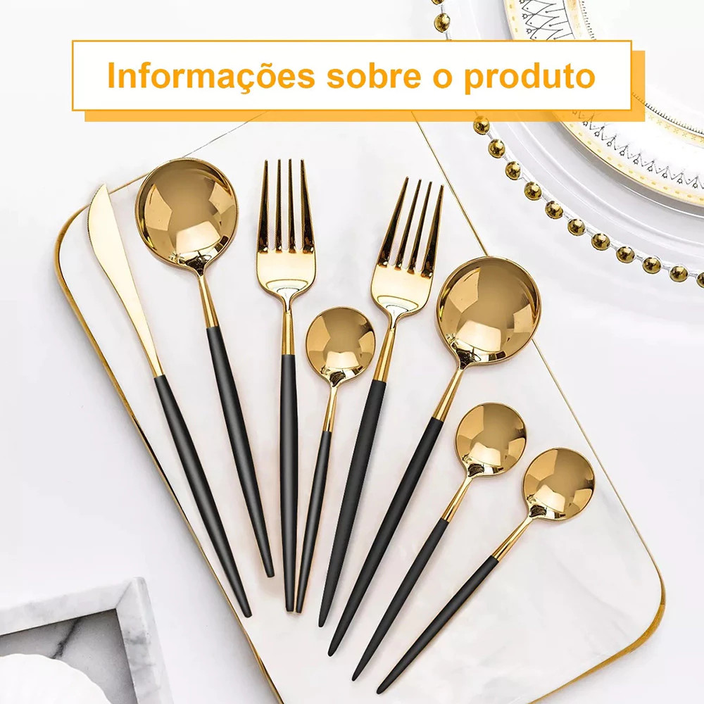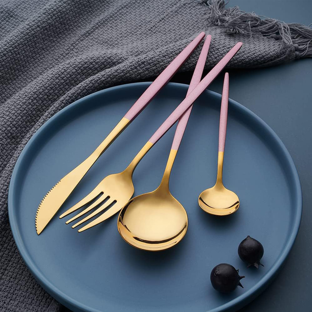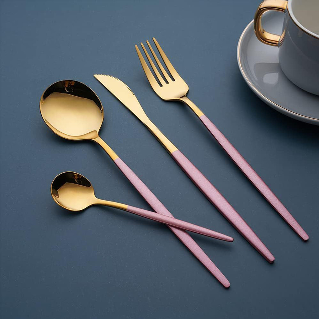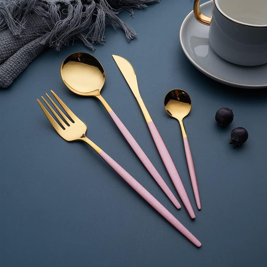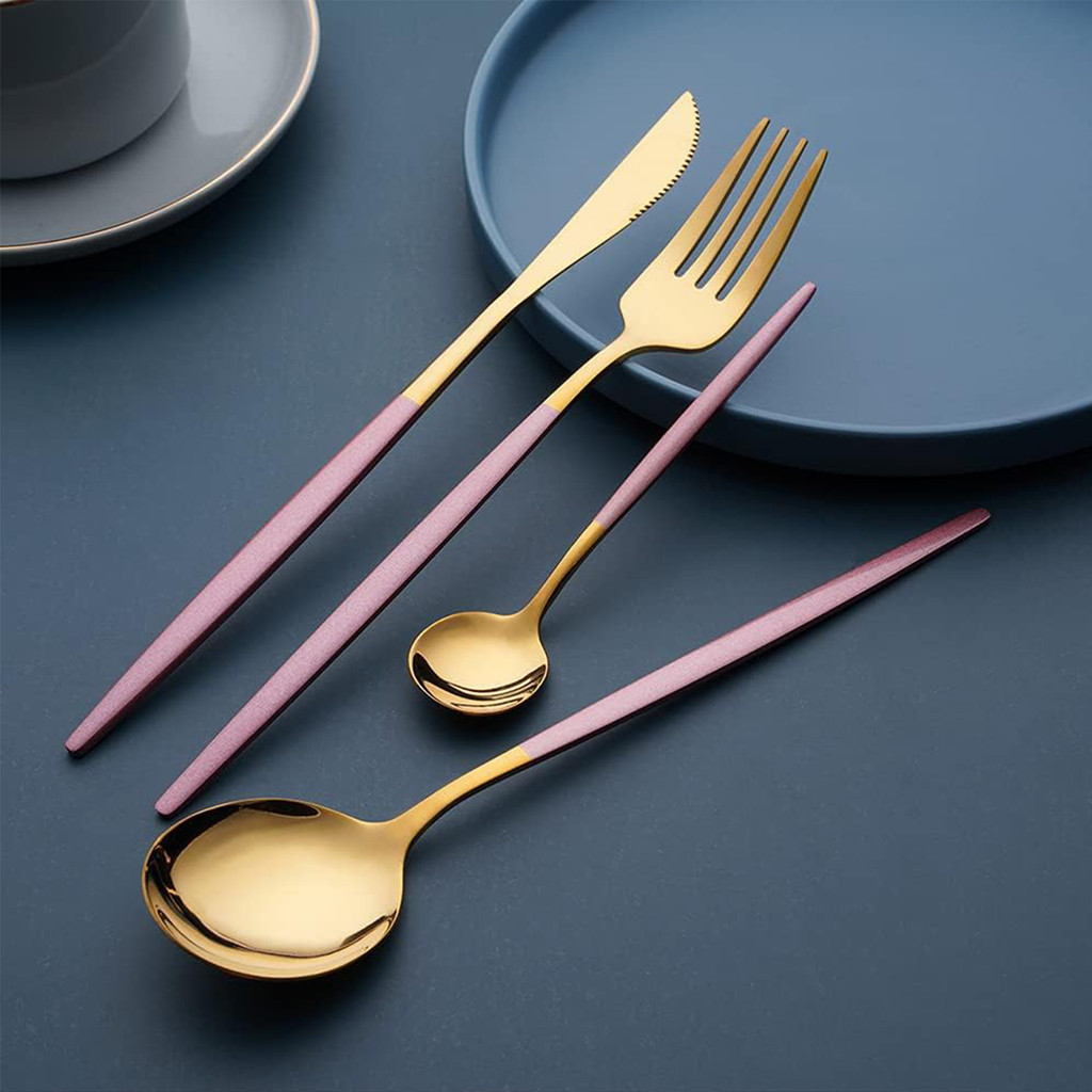 Belifou Kit 24 Jogo De Talheres Aço Inoxidável 416 Rosa Dourado - Juno