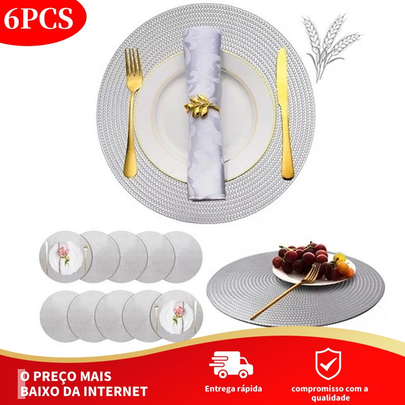 Kit 10 Peças Jogo Americano Redondo Cozinha Jantar Jogo americano dourado