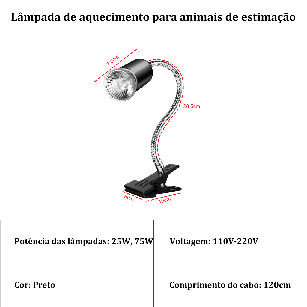 【Garantia vitalícia】Aquecedor para Aquário com Lâmpada de Aquecimento para Répteis Inclui 2 Lâmpadas 25W75W 110V/220V