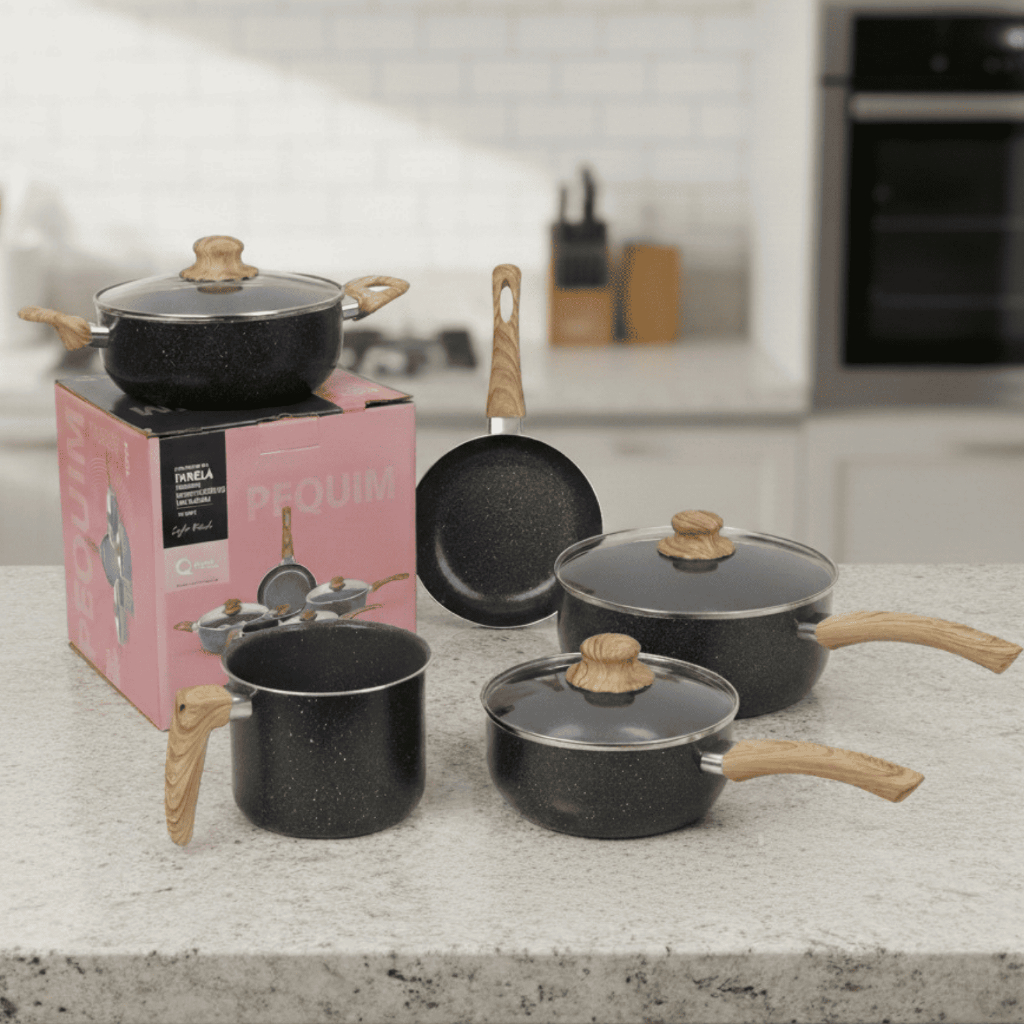 Jogo de Panelas Cerâmica Kit 5 Peças Antiaderente Tampa Vidro