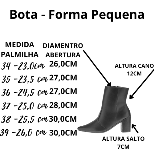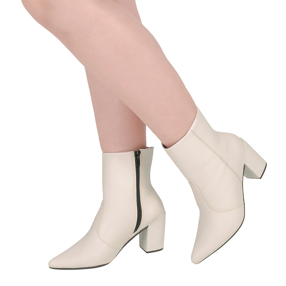 Bota Feminina Ziper Cano Curto Bico Fino Texana Salto Médio Grosso com zíper Macia Confortável
