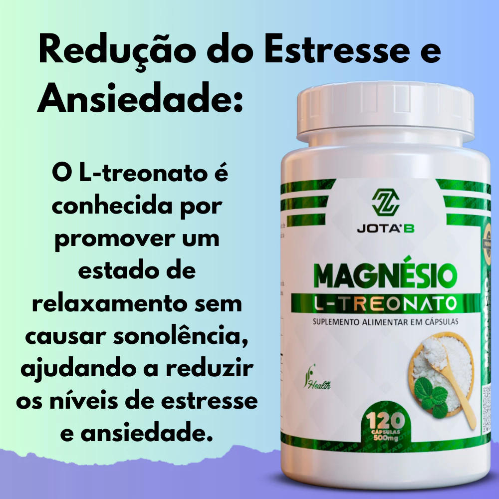 Magnésio L-Treonato Cápsulas 500mg | Saúde Cerebral e Cognitiva | Melhor Memória e Concentração