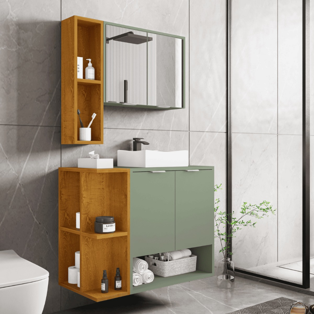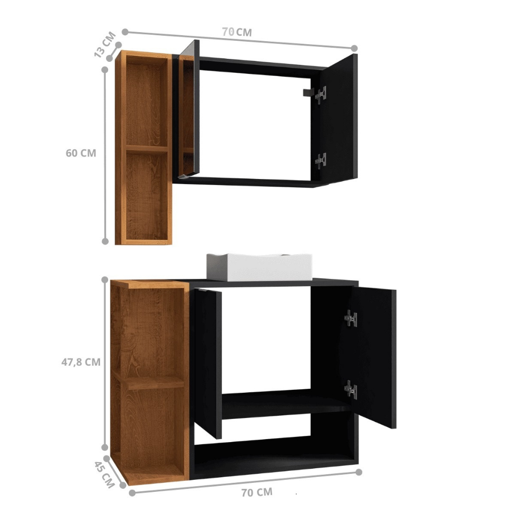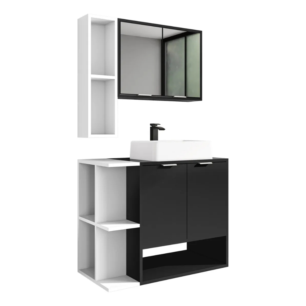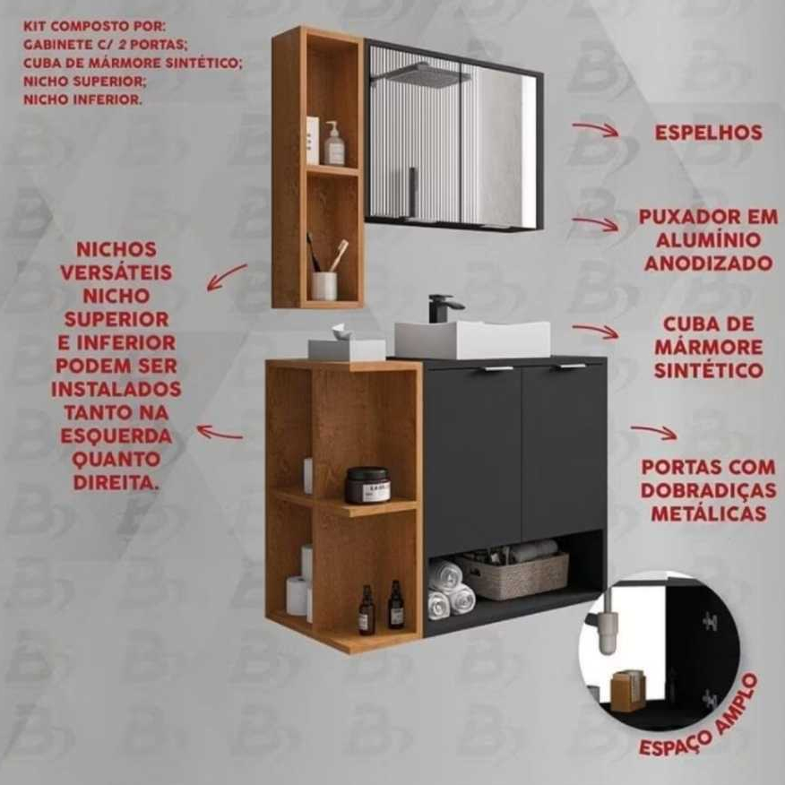 *PROMOÇÃO* Gabinete Para Banheiro Ibiza Com 2 Portas Cuba e Armário Espelheira - D&A