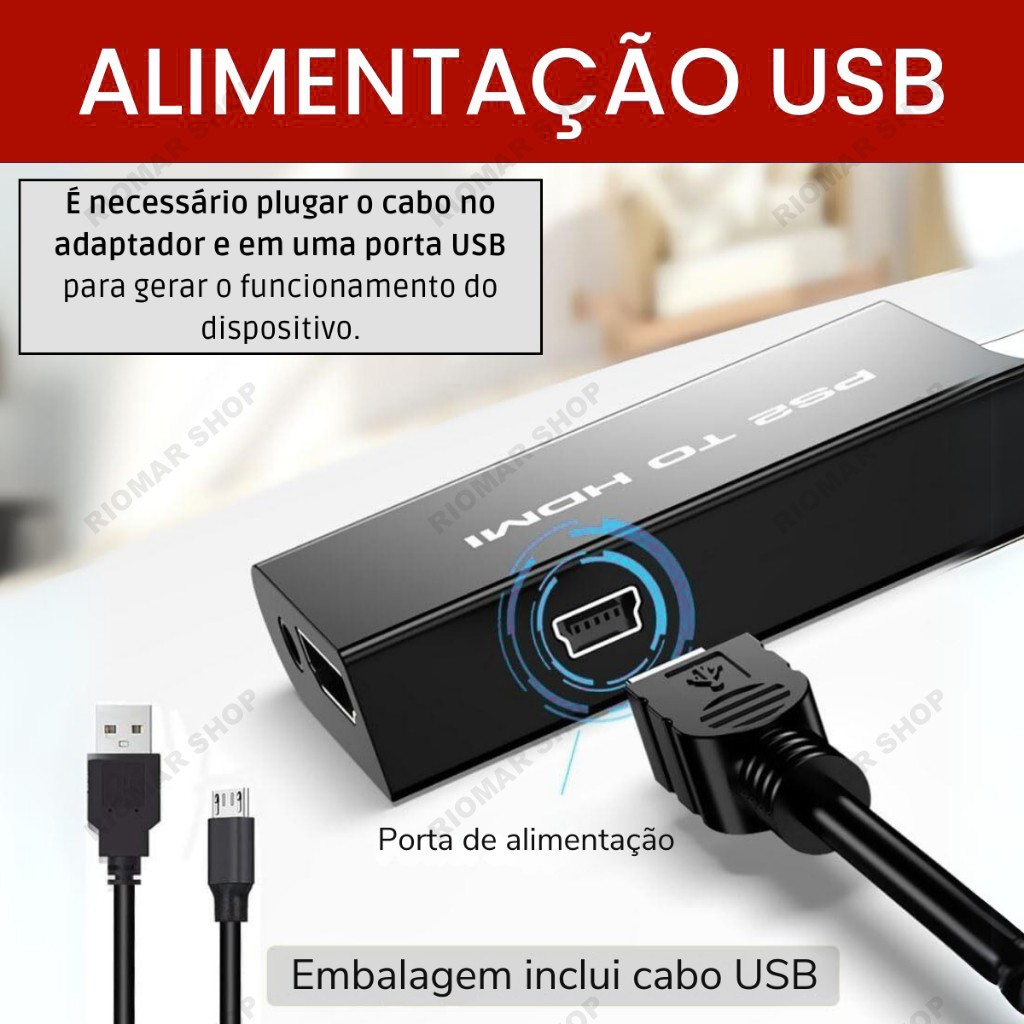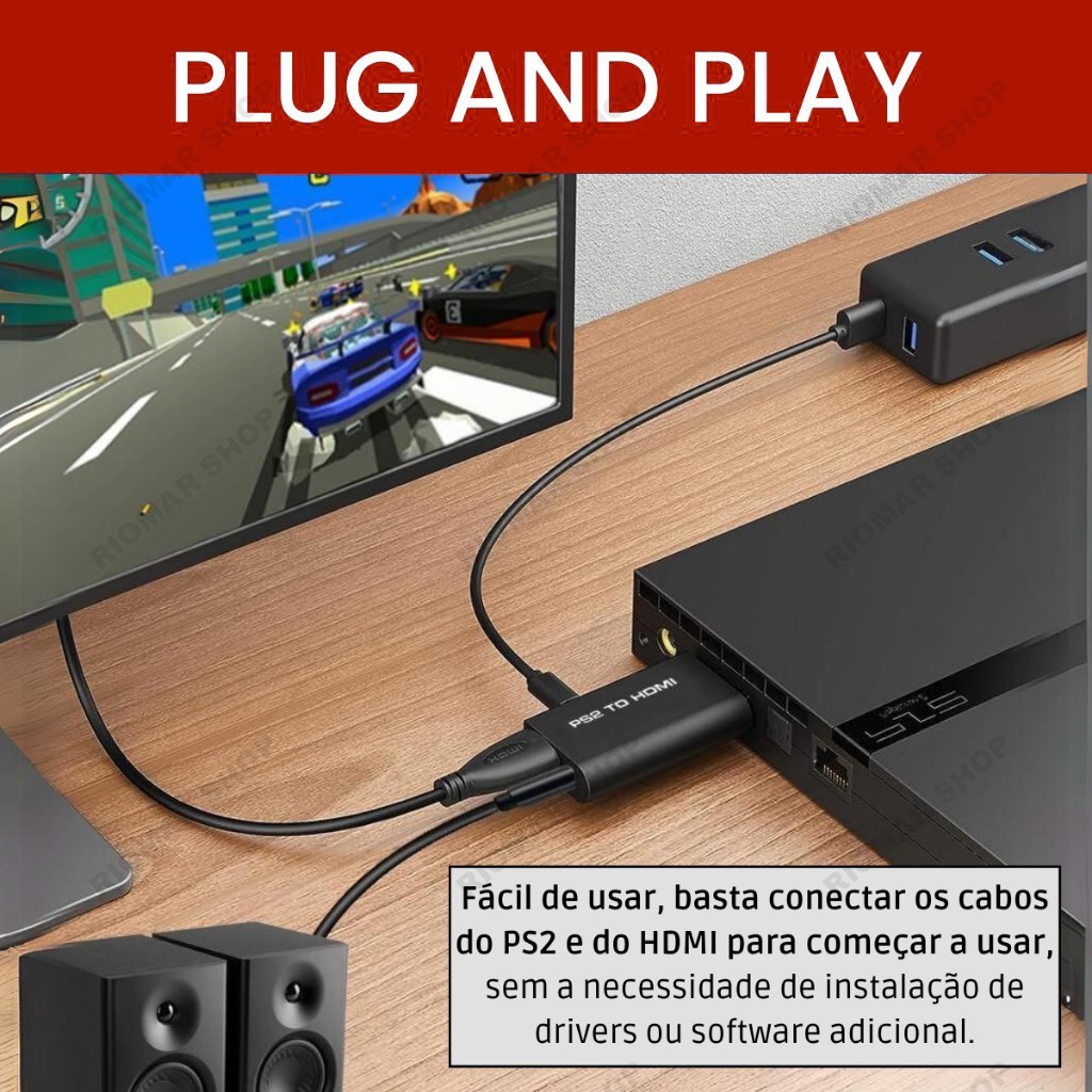 Adaptador Ps2 Conversor Vídeo Audio Av Para Hdmi + Cabo Hdmi Tv Monitor