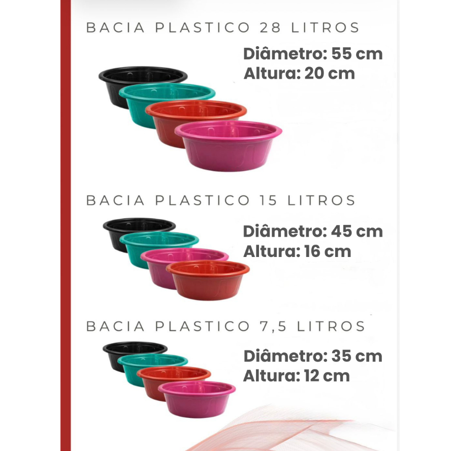 Kit Lavanderia com 3 Bacias 28L + 15L + 7,5L e 1 Balde 5,5L Multiuso Utilidades