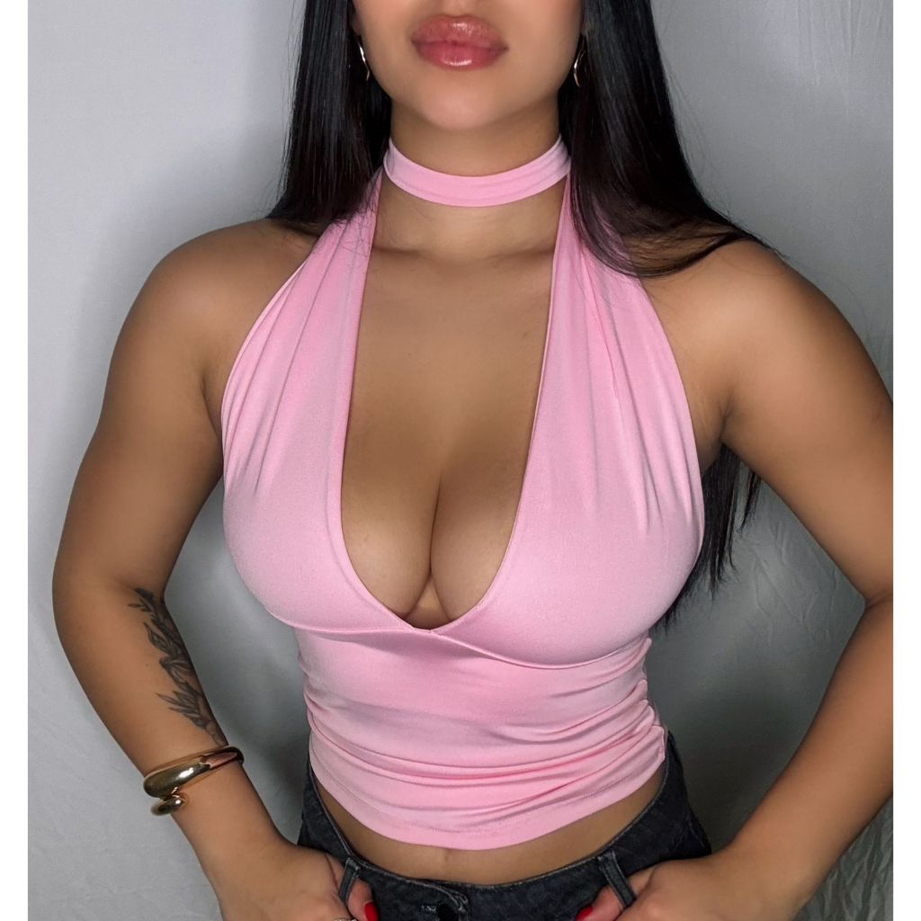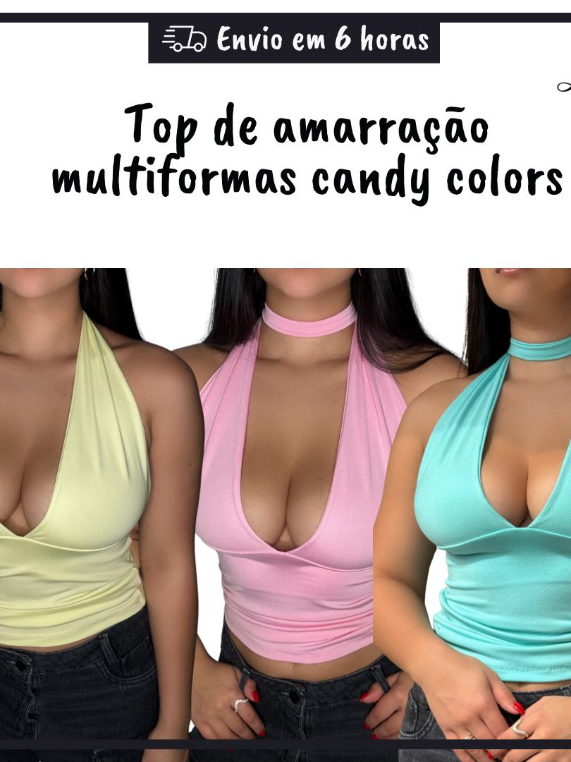 Blusa Cropped Feminina Com Amarração Frente Única Suplex Decote Candy Colors Verão
