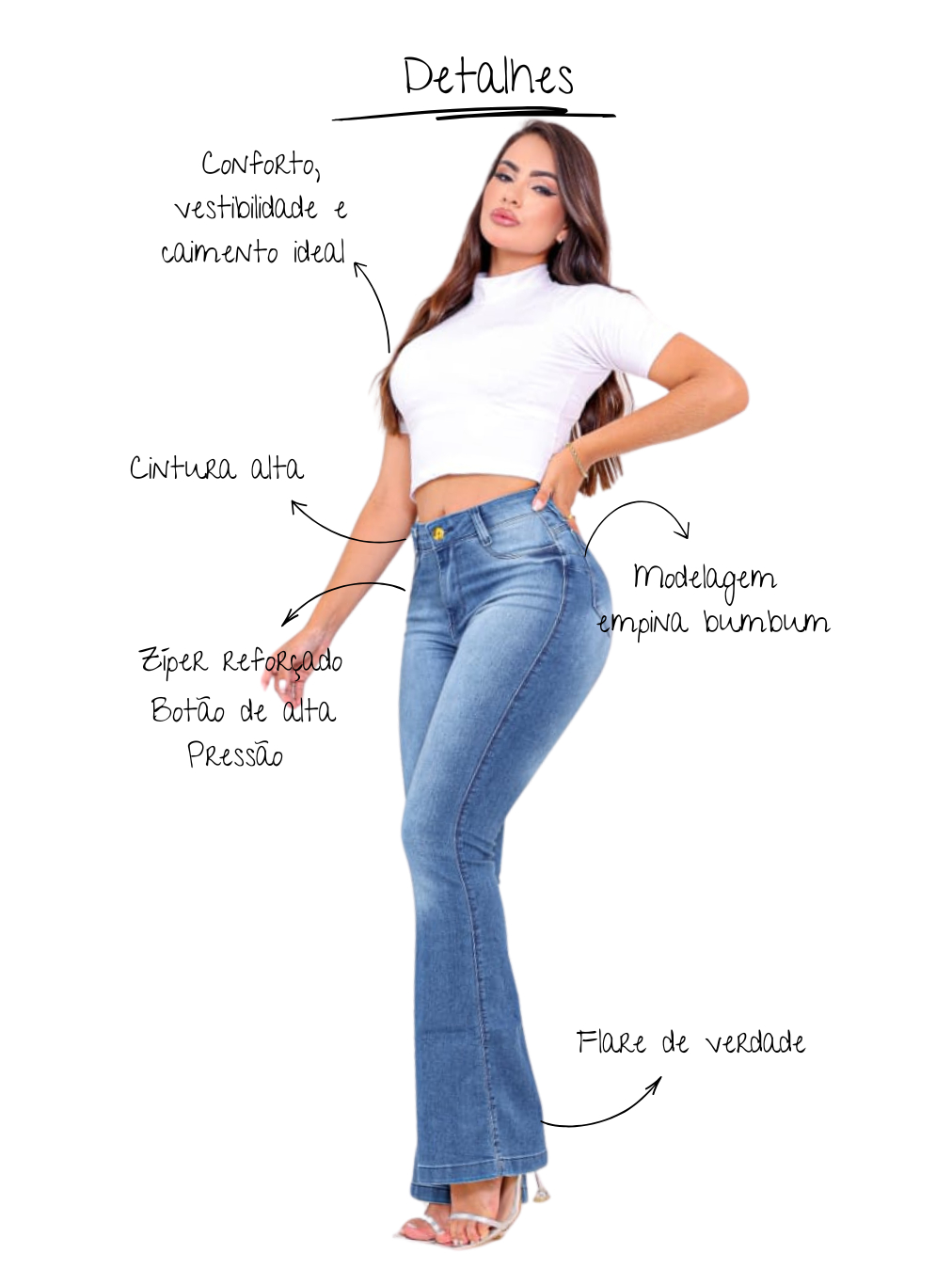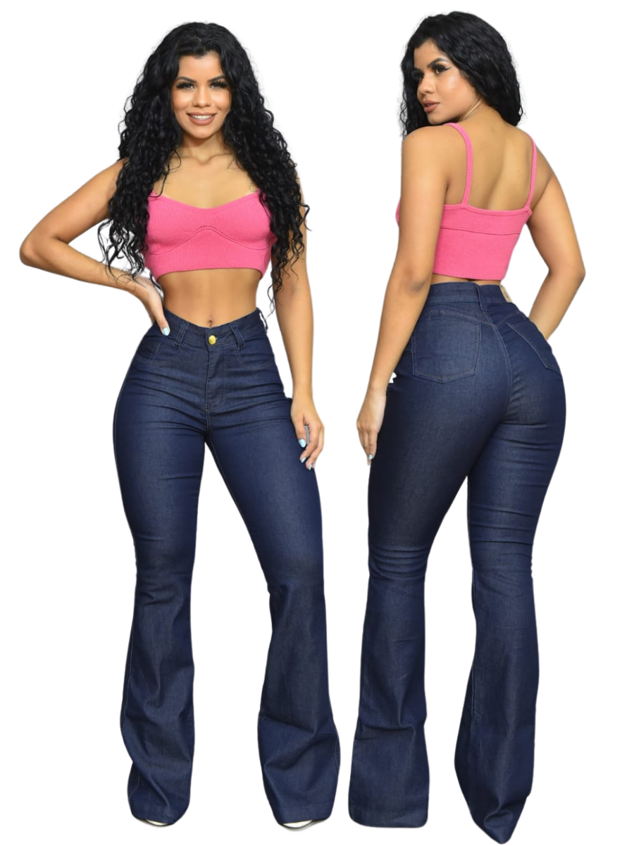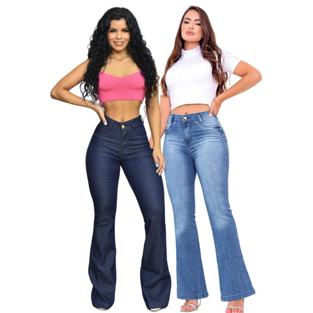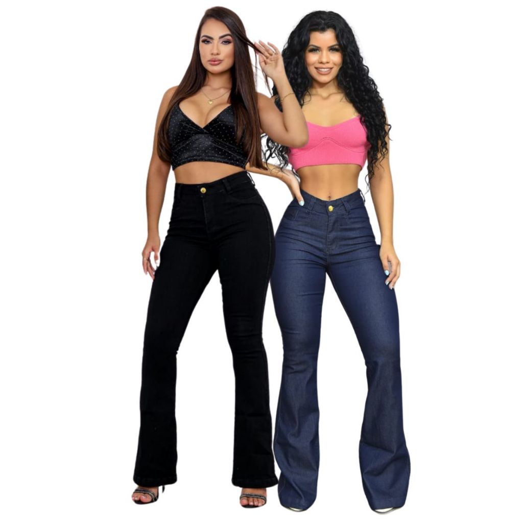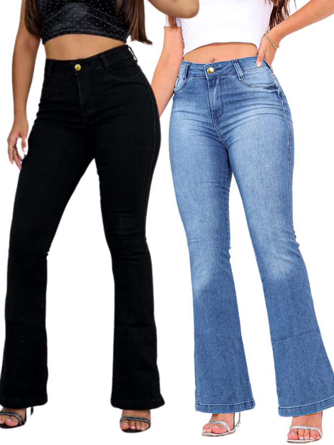 Kit 2 Calças Feminina Jeans Flare Cintura Alta Premium Levanta Bumbum com Lycra Top