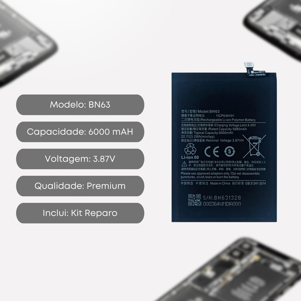 Bateria Para Redmi 10 | Redmi 10 Prime - Bn63 + Kit Reparo