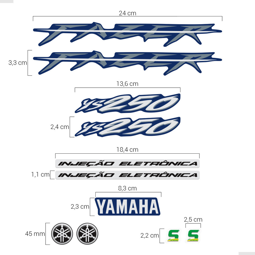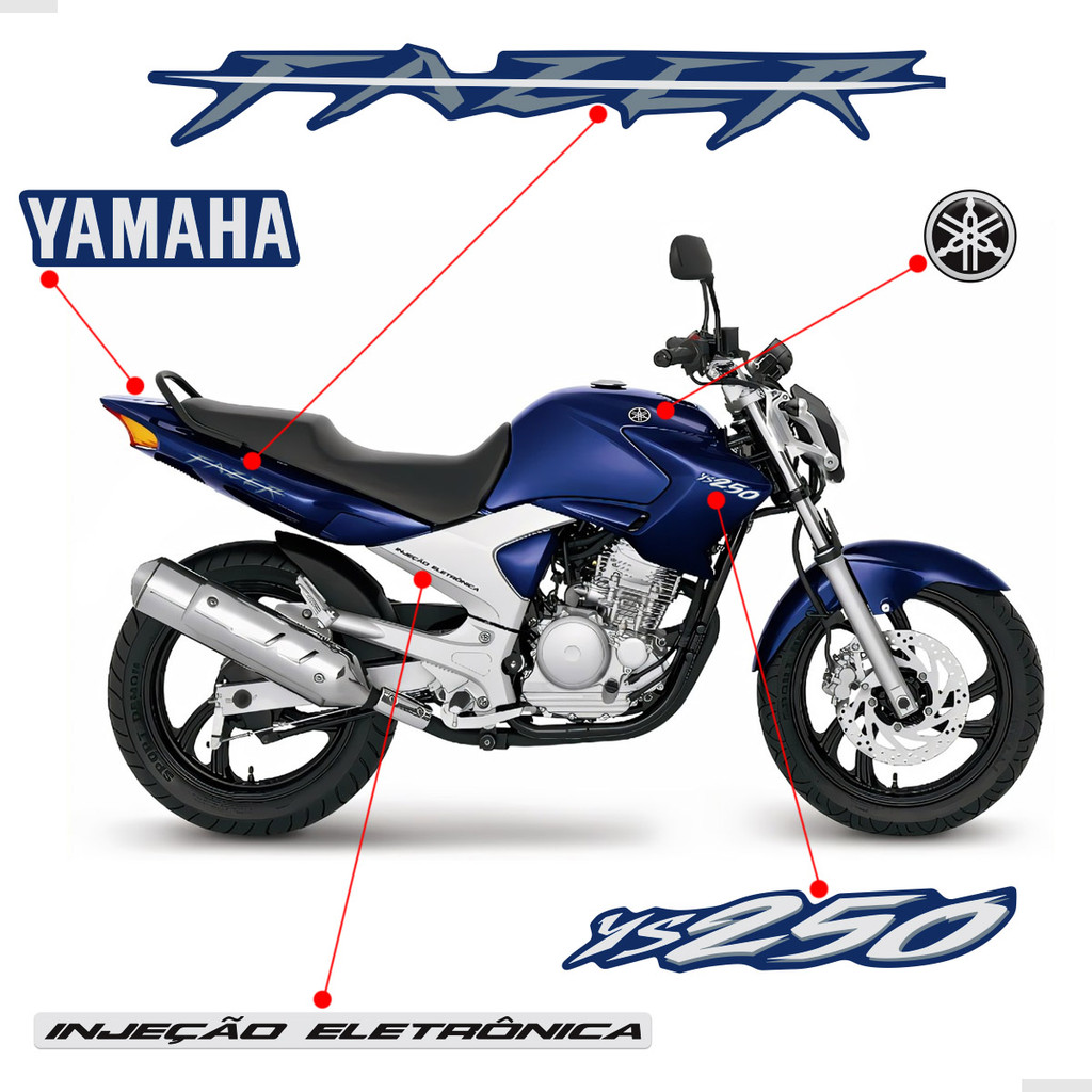 Adesivos Para Yamaha Fazer 250 Ys 2008 Moto Azul + Emblemas