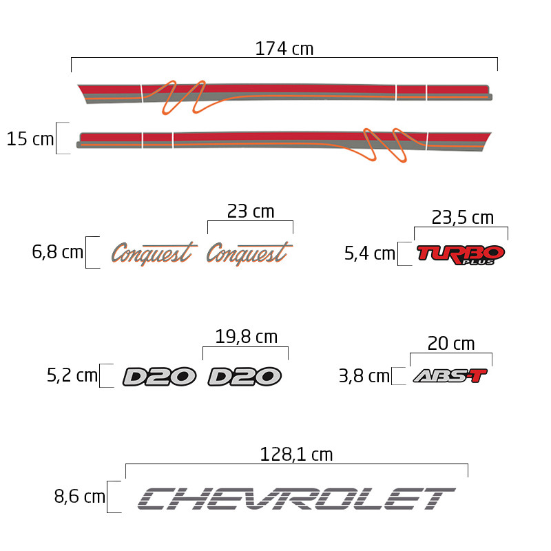 Faixa D20 Conquest 1996 Emblemas + Adesivo Chevrolet Grafite