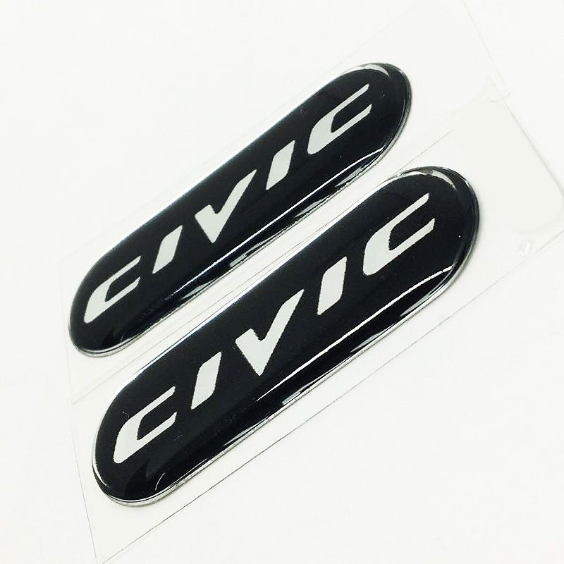 Par De Emblemas De Coluna Linha Civic Adesivo Resinado Preto