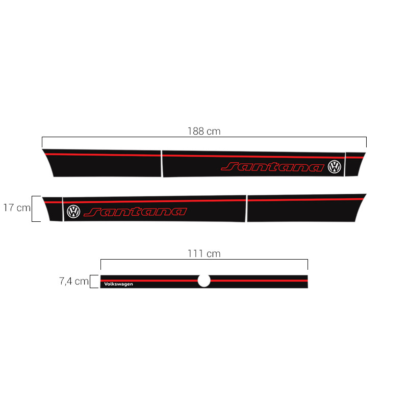Kit Faixa Lateral Santana 1991 Ate 2006 + Adesivo Traseiro