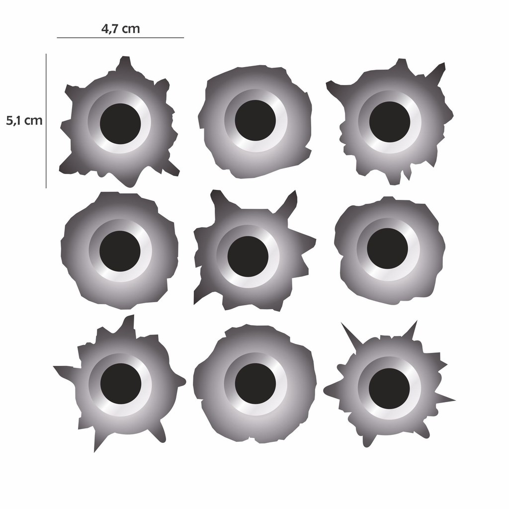 Kit Adesivos Decorativo Buraco Tiro de Bala Cartela 9 unid