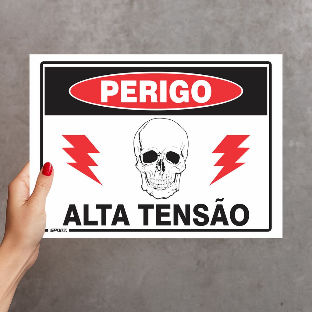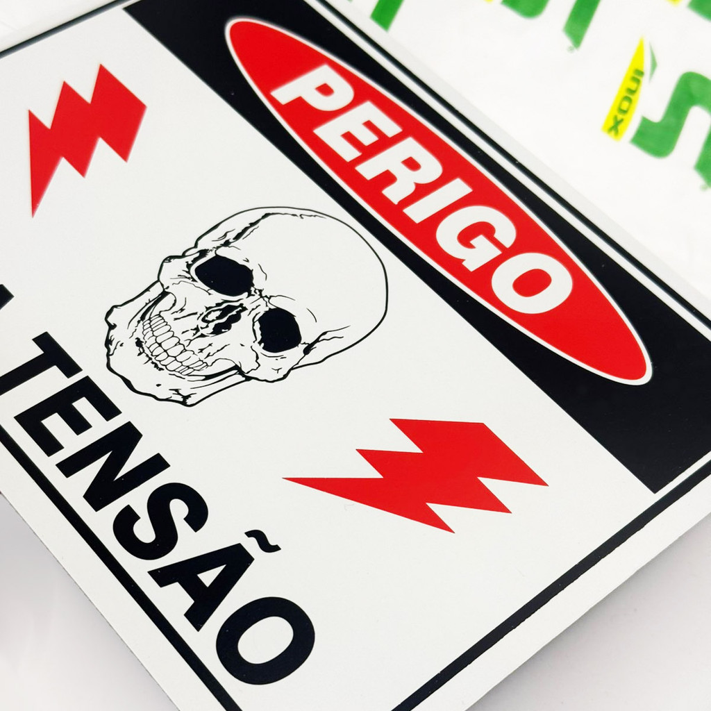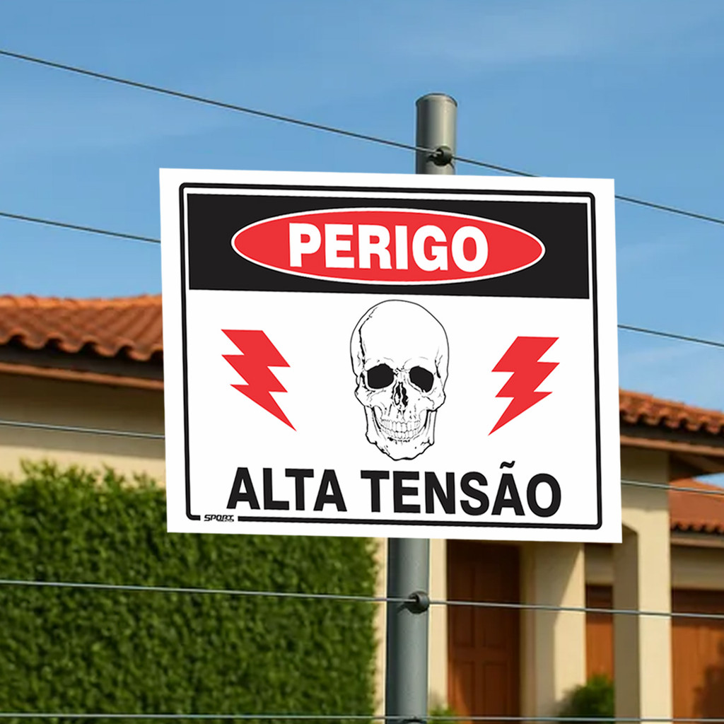 5 Placas Sinalização Perigo Alta Tensão Risco Choque 20x15cm