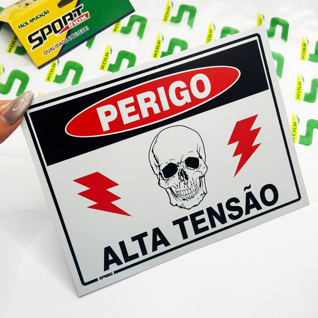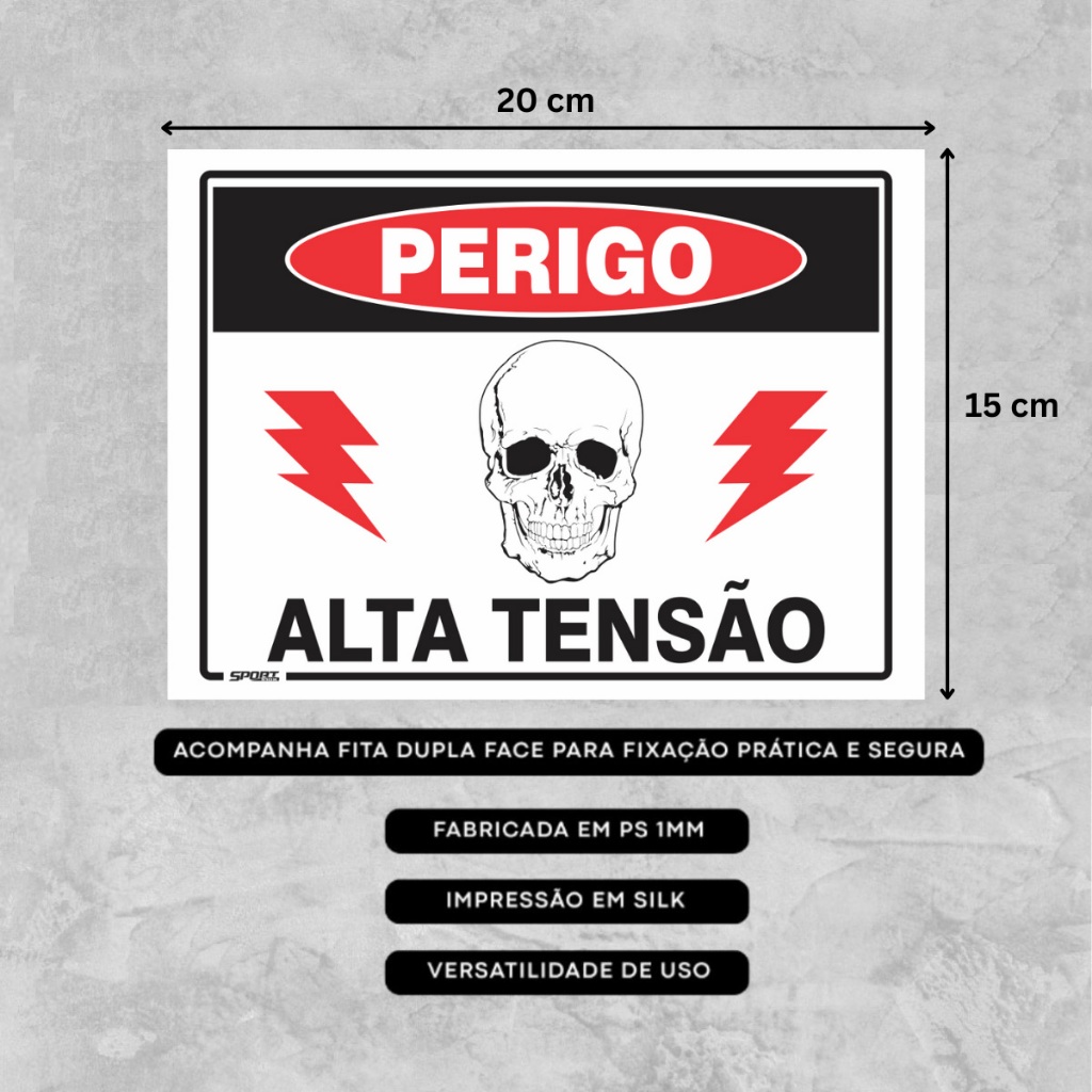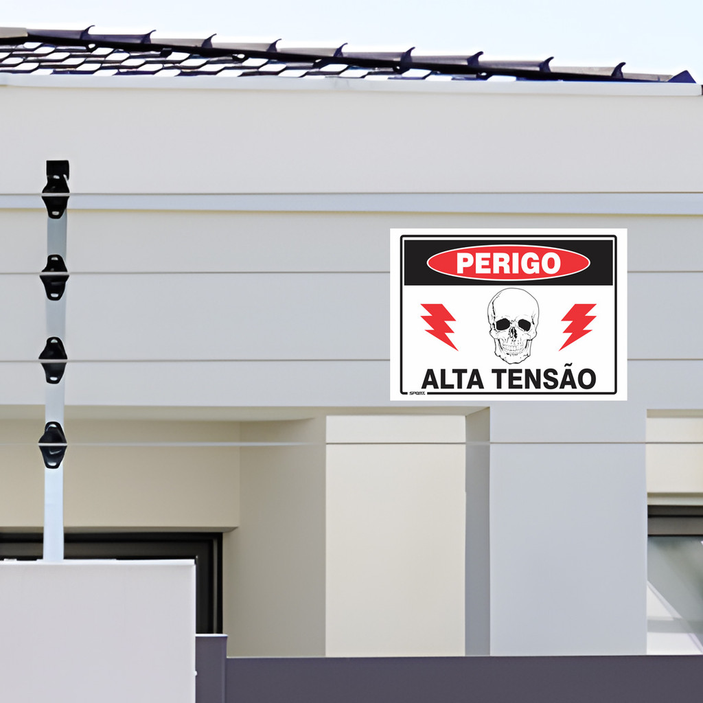 5 Placas Sinalização Perigo Alta Tensão Risco Choque 20x15cm