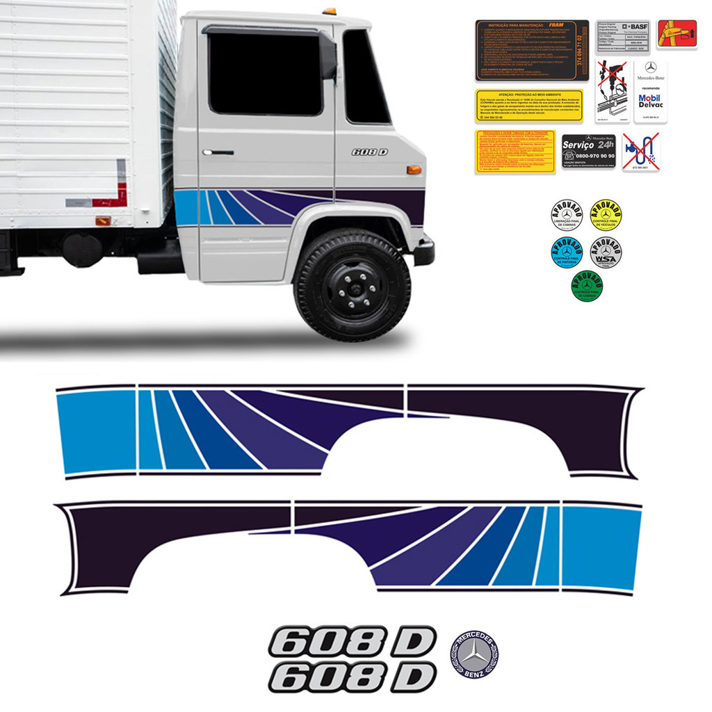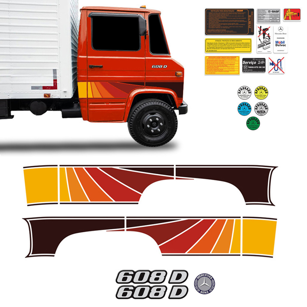 Kit Faixa Lateral Mercedes Benz 608 D + Emblemas Resinados