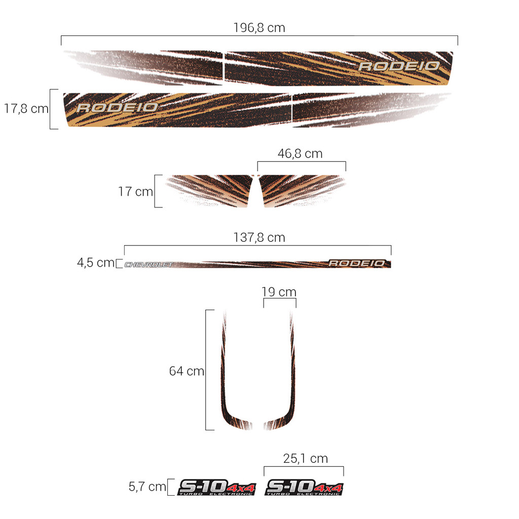 Faixas S10 Rodeio 2011 Completo + Adesivos Turbo Eletronic