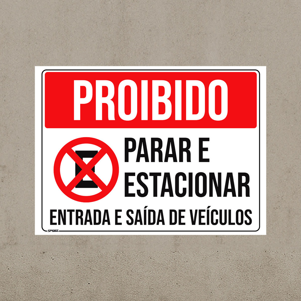 Placa Proibido Parar Estacionar Entrada Saída Veíc. 40x30cm